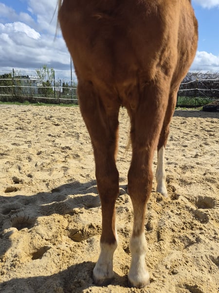 Unser NP Revolutions Gun, liebevoll Tapsy genannt, sucht ab sofort ein 5 Sterne zu Hause. Tapsy ist ein kleiner aufmerksamer Quarter Horse Hengst in der Farbe Sorrel. Er ist 2024 geboren und hat ein aktuelles Stockmaß von 1,33. Sein neugieriges, verspieltes und menschenbezogenes Wesen machen ihn zu einem tollen Partner im täglichen Umgang. Bei uns wächst er artgerecht im Herdenverband auf und zeigt sich dabei sozial und ausgeglichen. Er wurde dem Alter entsprechend im Fohlen ABC ausgebildet, ist halfterführig und lässt sich problemlos putzen. Der Besuch des Hufschmieds stellt keinerlei Probleme dar. Seine Abstammung ist MJ Whizzy Revolution x Listo Smoking Gun. Er ist ein gesunder junger Hengst, der regelmäßig entwurmt und altersentsprechend geimpft ist. Sein 6-Panel Test ist N/N Aktuell ist Tapsy noch ein Hengst. Wir planen einen Termin zur Kastration, da er in der Herde mit Stuten zusammen steht. Falls er ein Hengst bleiben soll, müssten sich die Interessenten schnellstmöglich melden.