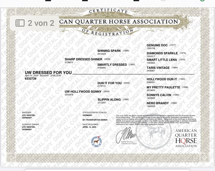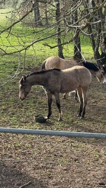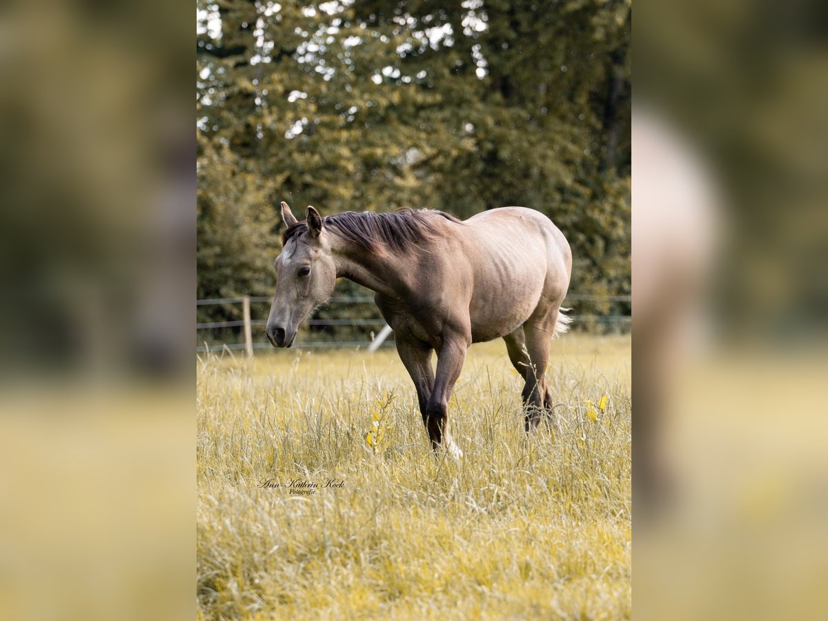 Due to breeding retirement Charismatic 2-year-old Sooty Buckskin Quarter Horse stallion with excellent pedigree. Well-behaved in handling. Very good mover. Registered with EWU for young horses. Grows up in a young stallion herd.