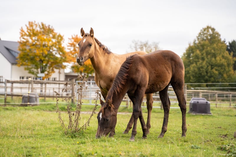 È in vendita un promettente stallone American Quarter Horse nato nell'aprile 2024. Questo giovane stallone Red Dun con strisce zebrate sulle zampe anteriori colpisce già per la sua compatta muscolatura. Sarà probabilmente alto 150 cm e sarà sicuramente un partner versatile nel Western Allround. La sua sorellastra di 8 anni si distingue per il suo carattere orientato alle persone e per le sue capacità a tutto tondo: reining, trail, ranch riding o cross-country, è un'ottima compagna per il tempo libero. Siamo certi che anche "OLENAS DUN IS A GUN", alias Rudi, si svilupperà altrettanto bene. Non solo colpisce per il suo colore accattivante, ma anche per la sua natura amichevole. Ideale per cavalieri ambiziosi che cercano un partner di talento per varie discipline western. Rudi sarà svezzato alla fine di novembre e potrà rimanere con noi per un ulteriore allevamento. Entrambi i genitori sono visibili. Se siete interessati o desiderate ulteriori informazioni, contattateci.