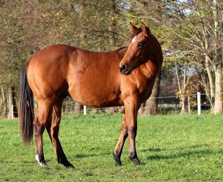 "Me Whiz My Magnum" Magnum Chic Dream/ Gunner Enkel! AQHA stallion (kann auf Wunsch gelegt werden, im Kaufpreis enthalten) bay geb.: 10.04.2024 PSSM N/N, GBED N/N, HERDA N/N, MH N/N, HYPP N/N Magnum ist ein sehr ausdrucksstarker, atlethischer und zutraulicher junger Hengst, der bisher nicht hengstig ist und neben Stuten steht. Er zeigt jetzt schon sein enormes Bewegungspotential, wechselt mit einer Leichtigkeit und zeigt jetzt schon einzelne Reiningmanöver. Sire ist RUF LIL MAGNUM. Seine Lifetime Time Earnings liegen bei über $123.000,- und hat 33 AQHA points, ROM Open Performance. Er war 2018 AQHA World Champion Senior Reining, 2018 Reining By the Bay 5th place (228!), 2018 Oklahoma RHA Ride & Slide Open Derby Reserve Champion, 2018 Tulsa Reining Open Classic Derby split 3rd, 2018 NRHA Open Derby Finalist TOP 20, 2017 NRBC Derby Preliminaries Open split 9th, 2017 AQHA World Junior Reining 4th, 2017 NRHA Int Open Derby Derby Co-Champion, 2017 High Roller Reining Open Classic Derby split 7th, 2017 High Roller Reining Classic Int Open Derby Champion, 2016 Cactus Reining Open Classic Derby, 2015 Tulsa Limited Open Reining Classic Futurity Finalist, 2015 Texas Warm-Up Open Reining Futurity 4th, 2015 Texas Warm-Up Int. & Ltd. Open Reining Futurity 3rd, 2015 SWRHA Fall Open Futurity L4 Co-Reserve Champion, 2015 NRHA Futurity Finalist und 2015 NRHA Futurity First Go Champion 224.5. Mutter von MAGNUM ist Gunna Be Whiz You by COLONELS SMOKING GUN. Colonels Smoking Gun ist NRHA 13 Mio $ Sire and Hall of Fame Stallion. Seine Lifetime Time Earnings liegen bei $177.670. Er war NRHA Open Futurity Reserve Champion, NRHA Open Derby Finalist, APHA World Champion Junior Reining Horse, APHA World Championship Reinig Futurity Champion, hat 58 APHA Points und APHA Superior Reining um nur einiges zu nennen. Magnum wurde regelmässig entwurmt und dem Hufschmied vorgestellt. Er wird mit Equidenpass der DQHA und COR der AQHA abgegeben. Einzahlungsprogramme: NRHA Germany SSP IRHBA BIP Italy nominated (über Sire) Euro Futurity SilverSpurs Million Dollar Challenge eligible: Germany, Italy, Austria and Euro Futurity www.white-diamond-horses.de