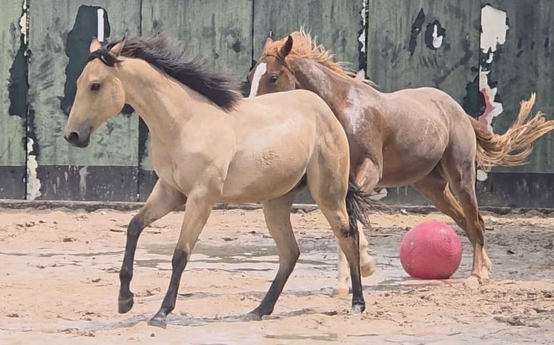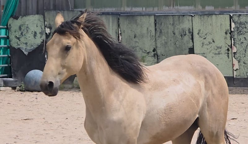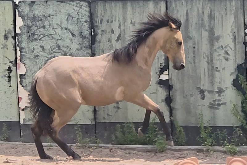 **HES Holywood Hancock** Źrebię ogiera rasy American Quarter Horse o umaszczeniu Buckskin *09.05. 2024 szacowany wzrost:** 153 cm Klasy koni western / reining / hodowla Oferujemy na sprzedaż obiecującego ogierka rasy American Quarter Horse. Ten młody ogier rasy Buckskin, urodzony 09.05.2024, imponuje swoją niezrównaną charyzmą, budową i talentem do ruchu. Już po miesiącu jest niesamowicie umięśniony, co prawdopodobnie zawdzięcza swojej mamie. Wyróżnia się również bardzo mocnymi stawami oraz stabilną i prawidłową podstawą, mierząc 153 cm w kłębie i wybitnie nadając się do jazdy western. Imponuje nie tylko przyciągającym wzrok umaszczeniem, ale także przyjazną naturą i chęcią do nauki. Ogier ten ma potencjał, aby stać się wybitnym partnerem w jeździe western i wnosi ze sobą najlepsze cechy swojej rasy. Jeśli jesteś zainteresowany lub masz dodatkowe pytania, czekamy na kontakt!