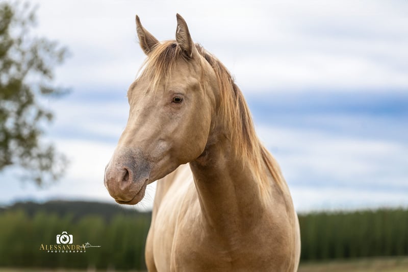 Na zlecenie klienta: Infinit Moonshine RR… …to mega stylowy ogier rasy American Quarterhorse w rzadkim kolorze „Classic Champagne”, który dzięki swoim doskonałym manierom i ciekawemu, żywemu charakterowi zdobył serca wielu fanów. Pochodzi z Czech, bezpośrednio od swojego hodowcy, gdzie wychowywał się w najlepszych warunkach w stadzie. W wieku 7 miesięcy trafił do Niemiec do swojej obecnej właścicielki, która na życzenie może kontynuować jego profesjonalne szkolenie. Jak na swój wiek, Infinit jest bardzo dobrze przygotowany do jazdy i zna już siodło oraz uzdę, a także potrafi chodzić w krok z jeźdźcem. Jest lonżowany we wszystkich trzech podstawowych chodach. Z radością i pewnością pokonuje przeszkody terenowe na terenie stajni. Był już wielokrotnie zabierany na przejażdżki jako koń towarzyszący, ale również samodzielnie pewnie porusza się w terenie. Kto szuka pewnego siebie i niezwykle mocnego psychicznie konia do ambitnego sportu rekreacyjnego lub zawodowego, ten trafił we właściwe miejsce! Obecnie Infinit przebywa w stadu z podziałem na płeć i w różnym wieku, zna również życie w boksie z padokiem i codziennym wypasem. Oczywiście był regularnie odrobaczany oraz odwiedzany przez kowala (bez podków) i jest zaszczepiony zgodnie z wymaganiami zawodów. Z rodziców został przetestowany na 6 Panel N\N. Oczywiście posiada pełne papiery AQHA, co czyni go interesującym dla hodowli. W jego rodowodzie znajdują się linie Foundation oraz znakomici reproduktory, tacy jak „Hello Shiner”. Jeśli masz konia, którego chciałbyś sprzedać, skontaktuj się z nami. Kupujemy, przyjmujemy w rozliczeniu lub sprzedajemy Twojego konia aż do ostatecznej sprzedaży. Więcej informacji na www.wow-pferd.de