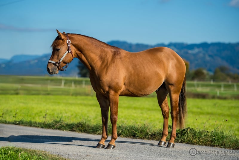 Murphy“ (Whiz A Trashy Gun, geb. 30.05.2023) ist ein korrekt gebauter, typvoller, wunderschöner Red Dun Hengst mit hervorragender Leistungsgenetik - seine Abstammung vereint bewährte Spitzenlinien des Reiningsports. Murphy überzeugt durch: - natürliche Athletik und kraftvolle Hinterhand - gute Balance und Bewegungsqualität - dynamische Gänge - hohe Lernbereitschaft und Motivation - freundliches, menschenbezogenes Wesen Neben dem Reiningsport bringt er durch seine Bewegungsqualität und Rittigkeit ebenfalls beste Voraussetzungen für Ranch Klassen, insbesondere Ranch Riding, mit. Im täglichen Umgang zeigt er sich unkompliziert, feinfühlig und kooperativ. Ein junger Hengst mit vielseitigem Potenzial für Sport und Freizeit. Bei ernsthaftem Interesse freuen wir uns über Ihre Kontaktaufnahme.