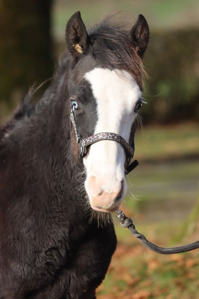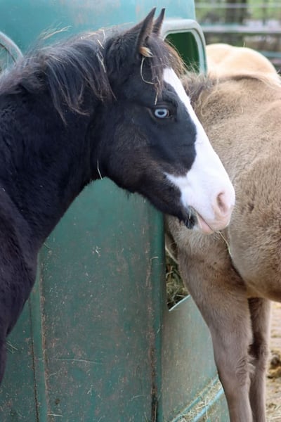 CHEYENNESJUJUGUNPLAY Ciemnobrązowy ogier AQHA w umaszczeniu splash overo (homozygotyczny czarny). Urodzony: 18.05.2025 Końca wzrostu około 150 cm 7-panel N/N EE Aa SW2/n