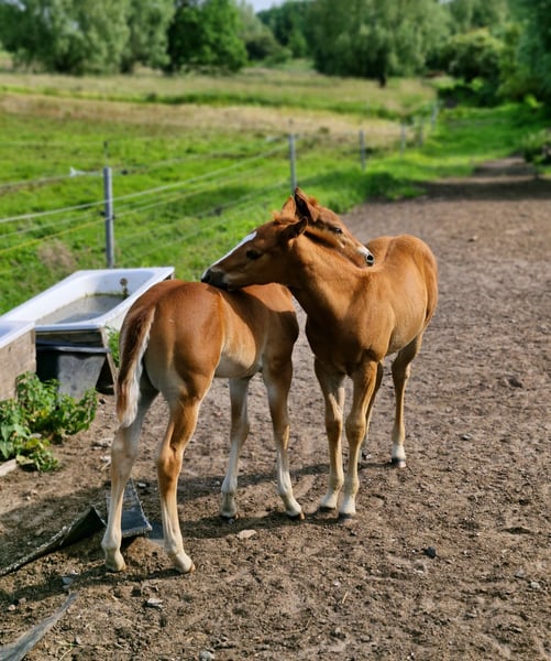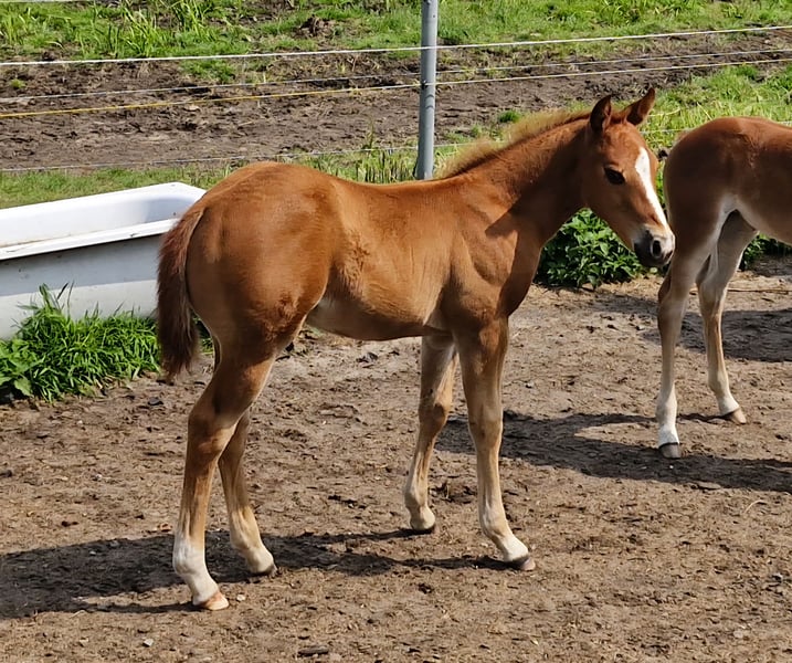 Ranch Horse trifft auf Cow Horse❤️ Frederick ist am 20.04.2025 geboren. In schicker chestnut Farbe überzeugt er mit seiner Coolness und seinem unkomplizierten Wesen Er kennt das Fohlen ABC, ist regelmäßig entwurmt, seine Papiere und Equidenpass sind beantragt Er wächst im Herdenverband im Offenstall auf, kennt Hunde und Kinder Endmaß ca 1,52m Über die Eltern N/N (könnte HERDA Einzelgenträger sein) Standort: 18574 Gustow ( Insel Rügen)