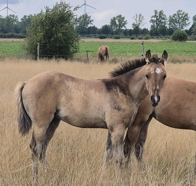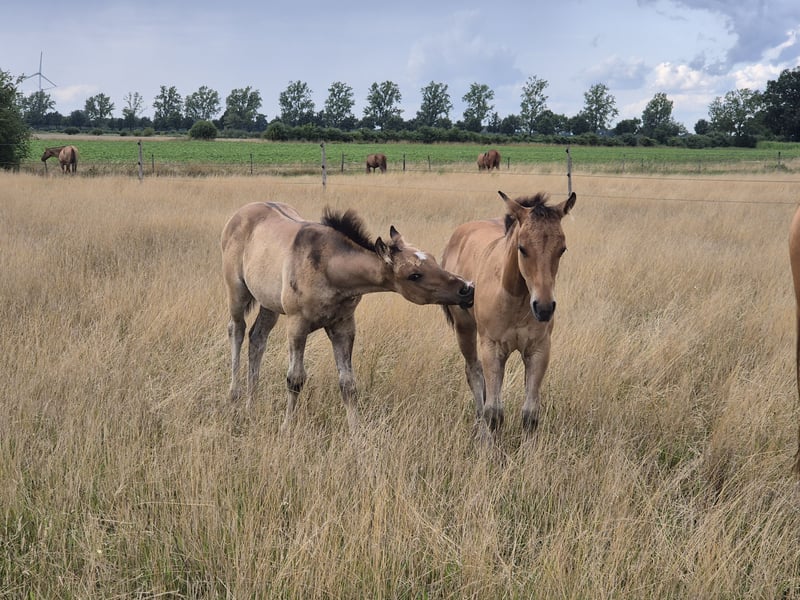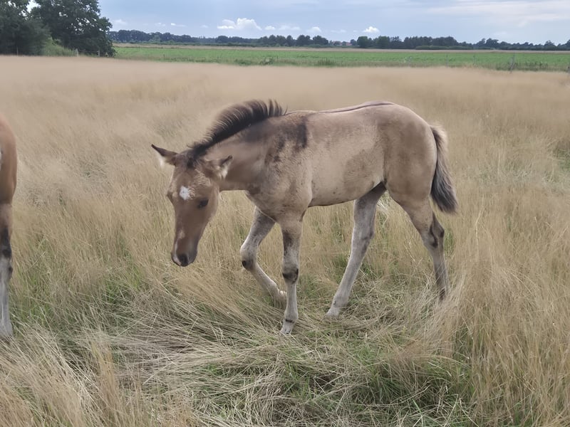 **Verkaufsanzeige: American Quarter Horse Fohlen, Hengst** Spotlight Charly x HF Mobster (von Gunner) Zum Verkauf steht ein vielversprechendes American Quarter Horse Hengstfohlen geboren im Mai 2025. Vater ist der Ausnahmehengst Spotlight Charly (www.spotlightcharly.de), Mutter eine direkte HF Mobster Tochter. Mit seiner auffälligen Farbe, seinem überaus korrekten Körperbau und seinem bezauberndem und einnehmendem Charakter ist er ein echter Blickfang, und verspricht, ein überaustalentierter Partner für den gehobenen Turniersport zu werden.. "Rocher" wächst artgerecht und liebevoll im kleinen Herdenverband auf und wird täglich geführt und gehandelt. Er ist regelmäßig entwurmt und wird dem Schmied vorgestellt, kennt das Fohlen ABC und wird bei Abgabe verladefromm und schon als Handpferd gegangen sein. Auch die Erstimpfung werden wir vornehmen sowie eine Einzahlung ins EWU Jungpferdprogramm. Bei Interesse oder für weitere Informationen stehe ich gerne zur Verfügung. Bei einem Besuch bei mir können beide Eltern sowie Halbgeschwister angeschaut und evt probegeritten werden. Auch steht ein Stutfohlen sowie ein Jährling, evtl auch eines meiner älteren gerittenen Pferde zum Verkauf.