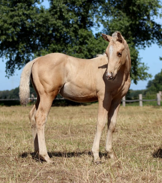 **Verkaufsanzeige: American Quarter Horse Hengst** Zum Verkauf steht ein vielversprechender American Quarter Horse Hengst, geboren im Jahr 2025. Dieser elegante Palomino zeichnet sich durch sein charmantes Wesen und seine hervorragenden Reining-Fähigkeiten aus. **Merkmale:** - **Rasse:** American Quarter Horse - **Geschlecht:** Hengst - **Geburtsjahr:** 2025 - **Farbe:** Palomino - **Ensstockmaß geschätzt :** 151 cm - **Disziplin:** Reining Unser Hengst hat das Potenzial, sowohl im Sport als auch als Freizeitpartner zu begeistern. Er ist gut erzogen, umgänglich und zeigt bereits viel Talent. Bei Interesse oder weiteren Fragen stehe ich Ihnen gerne zur Verfügung. Lassen Sie sich diese Gelegenheit nicht entgehen, einen außergewöhnlichen Partner für sich zu gewinnen!