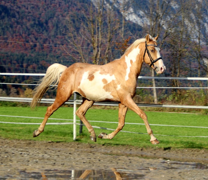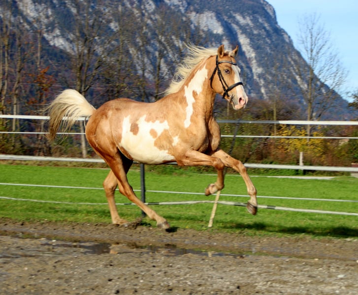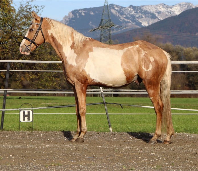 Bandit the Heartbreaker A truly special horse is now seeking a new chapter in its life. Bandit is a stunning and noble Cruzado gelding, approximately 1.55 m (16.1 hh) tall, aged 9 years. He impresses with exceptional obedience and absolute rideability. He is familiar with advanced dressage movements and has experience in jumping. Bandit is very versatile in his riding. Whether hacking, dressage, or jumping – he approaches every task with intelligence and a desire to please. This handsome heartthrob stands patiently at the blacksmith and is currently shod in front. Would you like to get to know Bandit? Don’t hesitate to contact us! +43 680 401 57 30 6322 Kirchbichl Affordable transport available.