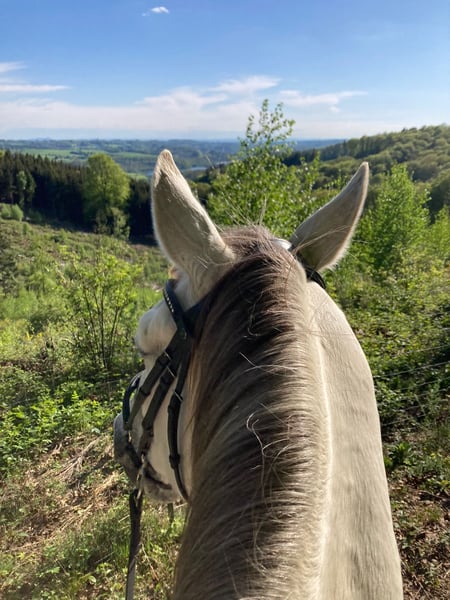 Ich verkaufe meinen 9-jährigen, im Juni 10-jährigen Andalusierwallach „Olimpico“ (Olli) nach reiflicher Überlegung, da es zwischen uns langfristig einfach nicht stimmig ist. Olli ist ein sehr ehrliches, menschenbezogenes und feinfühliges Pferd, das nie gegen den Reiter arbeitet. Er ist zurückhaltend gegenüber Neuem, lässt sich dabei aber jederzeit gut regulieren und steigert sich nicht hinein. Wenn er Sicherheit bekommt, ist er verlässlich und ruhig. Seine große Stärke liegt eindeutig im Gelände: Er ist dort souverän, kennt alles und geht regelmäßig allein oder in Begleitung raus. Mit bekannten Pferden ist er entspannt unterwegs. Bei fremden Pferden ist er anfangs etwas unsicher und stark auf den Partner fixiert, bleibt aber händelbar. Als dressurbegeisterte Freizeitreiterin wollte ich gerne ein Pferd, was sowohl Spaß an Ausreiten und Freizeit hat wie auch an regelmäßiger dressurmäßiger Arbeit. Bei Olimpico ist das leider nicht der Fall. Er hat absolut keine Freude an der Dressurarbeit, macht aber alles brav mit. Er hat mittlerweile ein souveränes L-Niveau erreicht, aber man merkt deutlich, dass er keinen Spaß daran hat. Man muss jede Stellung und Biegung mühsam erarbeiten, es fällt ihm nicht leicht und er stresst sich selbst dabei (sichtbar z. B. durch erhöhte Maultätigkeit). Er reagiert sensibel auf Unruhe im Umfeld. Wenn andere Pferde Stress haben, überträgt sich das auf ihn. In ruhiger Atmosphäre ist er hingegen absolut gelassen. Von sich aus macht er keinen Blödsinn, er hat noch nie versucht mich loszuwerden oder durchzugehen. Er hört fein auf Stimmhilfen. Ausrüstung und Handling: Am liebsten läuft er gebisslos, insbesondere im Gelände (Hackamore), was hervorragend funktioniert. Medizinisch wurde das Thema Gebiss/Maultätigkeit umfassend abgeklärt – ohne Befund. Er ist unkompliziert im Handling: lässt sich problemlos auch von einer Person verladen, steht ruhig auf dem Hänger, ist brav beim Schmied und beim Zahnarzt (ohne Sedierung). Haltung und Charakter: Olli ist verspielt, sozial und sucht aktiv Kontakt. Aktuell steht er bei mir zu Hause mit einer älteren Stute zusammen, die leider nicht spielt. Ihm fehlt eine Herde Kumpels zum Spielen und Toben. Er ist einfach in der Fütterung (Heu + Mineralfutter ausreichend). Gesundheit: Er hat im Zeitraum Januar bis etwa März/April leichten Husten zu Beginn der Bewegung, vermutlich allergisch bedingt (nicht weiter abgeklärt). Mit nassen Heu/ gelegentlicher Inhalation lässt sich das gut in den Griff kriegen. Der Husten tritt mal mehr/mal weniger auf, vermutlich je nach Pollenflug. Außerhalb dieser Zeit ist er symptomfrei und benötigt keine Medikamente. Er steht im Sommer 24/7 auf der Weide und verträgt das sehr gut. Er hat gute, stabile Hufe und trägt aktuell nur aufgrund des steinigen Geländes Eisen. Regelmäßige Zahnkontrolle, Vorstellung bei Chiropraktiker und Physiotherapie. Warum ich ihn abgebe: Neben der reiterlichen Nicht-Passung hat sich auch aktuell meine berufliche und familiäre Situation verändert. Ich möchte meinen Fokus künftig anders setzen und die Pferdehaltung zu Hause einstellen. Wunschzuhause: Ich sehe Olli bei einer souveränen, ruhigen Freizeitreiterin oder einem entsprechenden Reiter, der seinen Schwerpunkt im Gelände hat, ihm Sicherheit gibt und seine feine Art zu schätzen weiß. Kein Verkauf an Händler oder Schulbetrieb. Er wird inklusive Che-Sattel und Hackamore abgegeben. Platz vor Preis. Für Rückfragen stehe ich gern zur Verfügung.