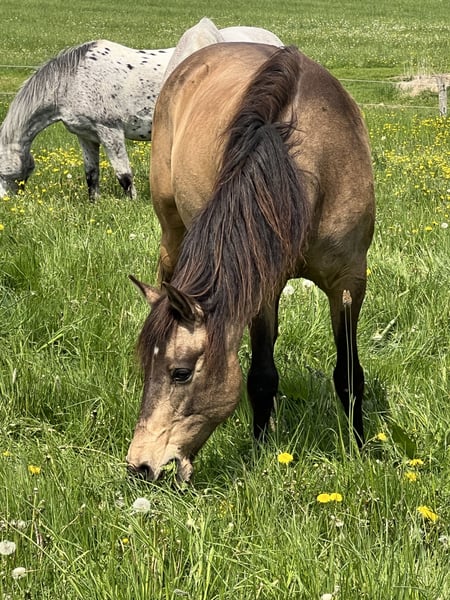 Ich suche ein passendes Zuhause für meinen Andalusier Primero. Er ist ein 11 Jahre alter Wallach (geb. 20.04.2014) wurde 2019 aus Spanien importiert und ich habe ihn 2 Wochen nach Import übernommen. Stockmaß 1,62 m, Farbe Bayo. Primero war angeritten, wir haben jedoch komplett neu gestartet. Er wurde in Deutschland von Beginn an akademisch gearbeitet. Er liebt die Boden- und Freiarbeit sowie das fortgeschrittene Longieren sowie die Handarbeit. Beim Reiten wurde bisher an den Basics gearbeitet - zur Zeit fehlt mir hier aber die Zeit. Typisch Spanier ist er sehr schnell und wendig, absolut fein in der Kommunikation und sehr aufmerksam - er will immer gefallen! Er geht auch gern ins Gelände. Primero ist kein Anfängerpferd und braucht einen Reiter, der ihm Sicherheit geben kann. Da ich selbstständig bin und ein Kleinkind habe, ist meine Zeit begrenzter geworden und ich kann ihn nicht täglich in dem Pensum bewegen, das er braucht. Er ist Schmiede- und verladefromm, immer brav beim Tierarzt. Vollständig geimpft und mehrmals im Jahr entwurmt. Es gibt Röntgenbilder aus 2019 (AKU damals) und vom Rücken aus 2021. Er hat eine Schimmelpilzallergie, die jedoch mit entsprechender Haltung keinerlei Probleme macht. Primero verträgt sich mit Wallachen, stand nie mit Stuten zusammen. Er geht ca. 5 Stunden am Tag auf die Weide, da er sonst zu Übergewicht neigt. Er muss nicht zwingend verkauft werden, ich hoffe auf diesem Weg seinen passenden Menschen zu finden, der ihm gerecht werden kann! Ich würde mich für ihn freuen, wenn er in der Sparte der akademischen Reitkunst bleiben könnte. Weitere Infos kann man gern am Telefon klären, bei Interesse einfach eine Nachricht senden.