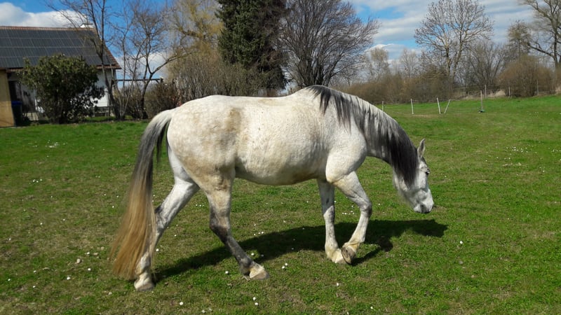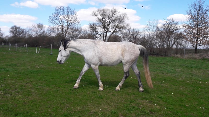 Z ciężkim sercem oferuję mój 1,66m wzrostu, piękny, uczciwy andaluzyjski. W maju skończy 10 lat. Kupiłem go jako czysty PRE. Jednak jego rodzice nie byli już licencjonowani, a zatem dostał "tylko" papiery Cruzado. Według poprzedniego właściciela, w młodym wieku dostał profesjonalną przejażdżkę vaquero. Z nami jeździ sam i w grupie w terenie i na placu. Jesteśmy czystymi jeźdźcami rekreacyjnymi. Niemniej jednak nie jest odpowiedni dla początkujących!!! Jest łatwy w pomocach. Jednak nie radzi sobie dobrze z ciśnieniem. Podczas galopu może się nagrzać. Nie jesteśmy jednak tak naprawdę zajęci. Uwielbia pracować! Boczne przejścia i przesunięcia poprzeczne nie stanowią dla niego problemu. Wykonuje również forhend i tylne ćwiartki w mgnieniu oka. Niestety, ma całujące się kolce. Według weterynarza jego przyszły jeździec nie powinien ważyć więcej niż 70 kg. Ponadto należy zawsze zapewnić wystarczającą ilość mięśni pleców i odpowiednie siodło. W ten sposób proces zostaje zatrzymany! Są też konie w sporcie, które idą z Kissing Spine, czego mu nie życzę. Zauważył to trener, który wskazał na jego krzywą postawę ogona i powiedział, że powinienem wykonać zdjęcia rentgenowskie dla bezpieczeństwa, aby móc dostosować do tego swój trening. Z nami stoi w otwartej stajni. Chciałbym zobaczyć to dla niego ponownie. To absolutnie nie jest sprzedaż awaryjna! Więc nie ma próśb o "ostatnią cenę"! Ponadto jest przekazywany tylko wtedy, gdy wszystko pasuje. Umiejętności jeździeckie muszą być obecne! I tak pokazałby mi to na rozprawie! Za przygotowanie próbne pozwalam sobie na pobranie kwoty 25, - Euro. Mam nadzieję, że w ten sposób zapobiegnę turystyce jeździeckiej! Jeśli masz dodatkowe pytania, skontaktuj się z nami! Zdjęcia tak naprawdę nie oddają mu sprawiedliwości i naprawdę nie jest mi łatwo go porzucić. Charyzma pod siodłem staje się piękniejsza dzięki umiejętnościom jeźdźca ,-)