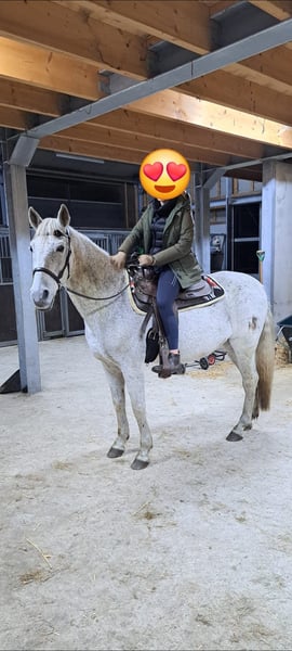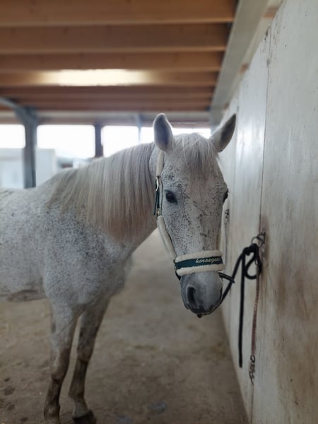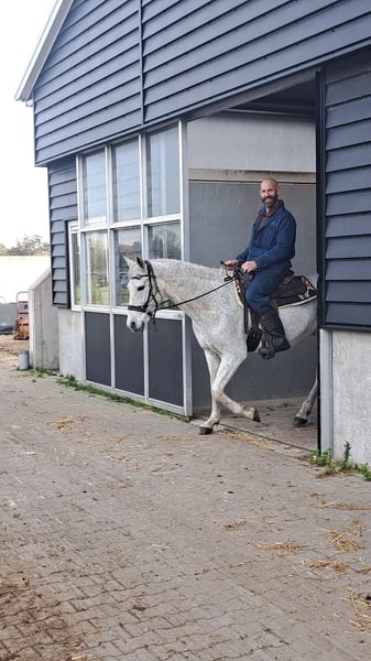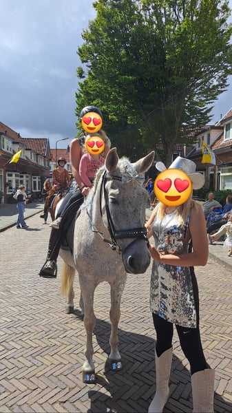 Calé is een lieve Spaanse Arabier ruin van ca. 1.55 m. Niet geschikt voor de jonge of onervaren ruiter. Calé is in het verleden gewend om hard te rennen over het strand maar helaas is dit er door onze pubers niet uit te krijgen. In de rijbak rijden is hij gewend maar doet hem geen plezier. Hij bedenkt trucjes om niet te hoeven lopen. Er is met hem dressuur gereden, recreatief en een sprongetje. Buiten rijden wil hij vooral hard. De laatste 3 jaar is hij in ons bezit en door onze pubers gereden maar die zijn hem niet goed de baas. Hij heeft medisch in die tijd nooit iets gemankeerd. Hij is goed verkeersmak aangezien wij in bebouwd gebied wonen en hij regelmatig het dorp door gaat. Hij is hartstikke braaf bij de smid, tandarts en op de poetsplek. Hij heeft geen stalgebreken en ook met wandelen buiten is hij poepiemak. Ook bij ons op de zorgboerderij is hij een lieve poetsmaat en reden wij zo nu en dan met zorgdeelnemers een hobbel rondje terwijl wij hem vast hielden. Hij is groepshuisvesting met andere ruinen gewend en is niet dominant, maar ook niet de laagste in rang. Hij kan ook heel makkelijk alleen op stal staan. Calé gaat ook de trailer op. Heeft de basisenting, jaarlijkse gebitsbehandeling, ontworming op orde en wordt regelmatig bekapt door de hoefsmid. Calé heeft helaas een brandmerk schade op zijn bil. Vermoedelijk ooit opgelopen in Spanje. Deze plek moet in de zomer zo nu en dan wat zonnecreme krijgen. Calé heeft geen zomereczeem of andere huidaandoeningen. Is 20 februari 2026 klinisch goedgekeurd én er is bloed in bezit bij dierenartsenpraktijk De Rijp. Voor een goed gevorderde ruiter die met geduld zijn vertrouwen kan winnen en hem kan plezieren met afwisselend werk is het een top paard! Omdat wij meerdere paarden hebben en onze pubers druk zijn met school, zoeken wij voor onze lieve Calé iemand die dit als een uitdaging ziet.