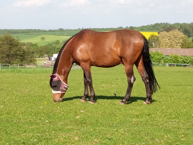 Das Pferd ist sehr gut erzogen und in der barocken Reitweise ausgebildet. Er möchte immer gefallen und es seinem Menschen immer recht machen. Leider hat er einige gesundheitliche Handicaps, so dass er nicht mehr voll belastbar ist. Arbeit ist für ihn aber trotzdem wichtig, ohne Aufgabe ist er nicht ganz glücklich. Arbeit an der Hand ist für ihn sehr gut geeignet, aber er geht auch gerne ins Gelände und ist dort sehr verlässlich. Herdenhaltung ist nur mit sehr ruhigen, friedlichen Pferden möglich, die ihn nicht mobben, da er große Angst vor anderen Pferden hat und sich nicht durchsetzen kann. Auch leidet er unter Sommerekzem und braucht daher viel Pflege und besondere Haltungsbedingungen, daher wird er nur mit Schutzvertrag abgegeben. Alles Weitere gerne auf Anfrage!
