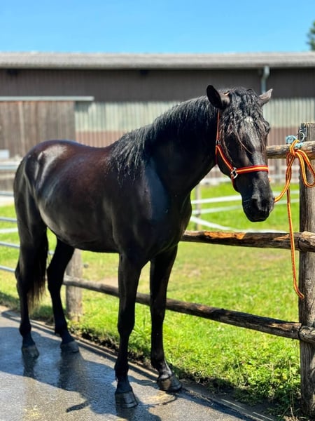 Standort: Schweiz, Kanton Zürich Geburtsdatum: 20.04.2022 (3,5 Jahre alt) Stockmaß: ca. 170 cm, noch im Wachstum Vater: Breamo (Ex Breamo de Garabana) Mutter: Hacendada JJ Herkunft: Spanien, eingetragen bei ANCCE Fletcher MR ist ein junger spanischer Wallach mit beeindruckender Größe, ausdrucksvollem Typ und einem außergewöhnlich intelligenten und ausgeglichenen Temperament. Er ist sehr menschenorientiert, lernt schnell, ist gesellig und freundlich. Trotz seiner beeindruckenden Statur bleibt er einfach im Umgang und aufmerksam gegenüber Menschen. Ausbildung und Arbeit • Wird seit etwa einem Jahr regelmäßig am Boden ausgebildet • Kennt alle drei Gangarten an der Longe, Übergänge und Halten • Führt seitwärts Bewegungen am Boden mit Gebiss und Cavesson aus • Zeigt den spanischen Schritt und die „Trapez“-Übung • Arbeitet an der Doppellonge • An Sattel und Zaum gewöhnt, ein Reiter hat mehrmals ohne Sattel auf ihm gesessen Das Training ist ruhig und sanft, angepasst an sein Wachstum und seine Entwicklung. Pflege und Gesundheit • Wird in einem aktiven Stall gehalten, lebt in einer Herde, sozial und unkompliziert • Impfungen und tierärztliche Untersuchungen sind auf dem neuesten Stand • Zähne wurden kürzlich überprüft • Vollständiger Röntgenbefund verfügbar • Vollständig versichert für ein Jahr Abstammung Sohn von Breamo (Ex Breamo de Garabana) und Hacendada JJ – eine Kombination aus einigen der ältesten und angesehensten PRE-Blutlinien, einschließlich Gorron XIII, Remache XIII und Dominante XVI. Diese Linien sind bekannt für ihre harmonische Konformation, Versammlung, elastische Bewegungen und zuverlässigen, ausgeglichenen Charakter. Fletcher hat die Ausdruckskraft, Intelligenz und Arbeitsbereitschaft geerbt, die für diese Blutlinien typisch sind. Verkaufsgrund Der Wallach wurde ursprünglich als Familienpferd gekauft, muss jedoch aufgrund persönlicher Umstände verkauft werden. Nur in gute, fürsorgliche Hände zu verkaufen. Preis: Attraktiver Preis für ein Pferd dieser Qualität aufgrund der Dringlichkeit.