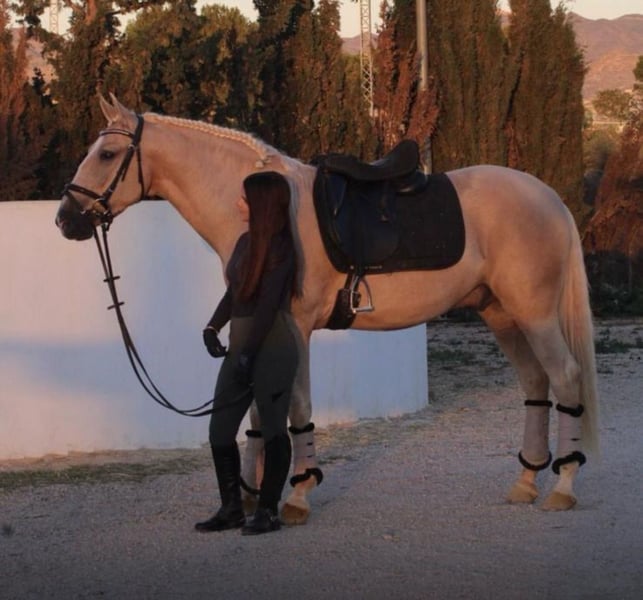 For sale is a stunning Andalusian gelding, born in 2019. This elegant palomino captivates with his striking appearance and friendly nature. **Features:** - Breed: Andalusian - Gender: Gelding - Year of Birth: 2019 - Color: Palomino - Height: 160 cm - Suitability: Dressage Our gelding has already gained initial experience in dressage and shows promising potential. He is well-mannered, well-trained, and has a sweet character. He is suitable for both experienced riders and ambitious beginners who enjoy dressage work. If you are interested or would like more information, please feel free to contact us! We look forward to your inquiry! Location: Spain - transport can be organized worldwide.