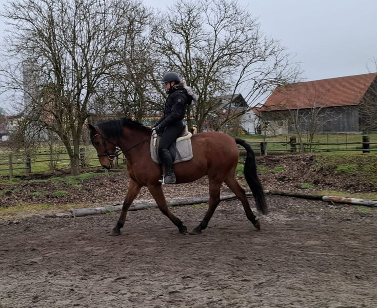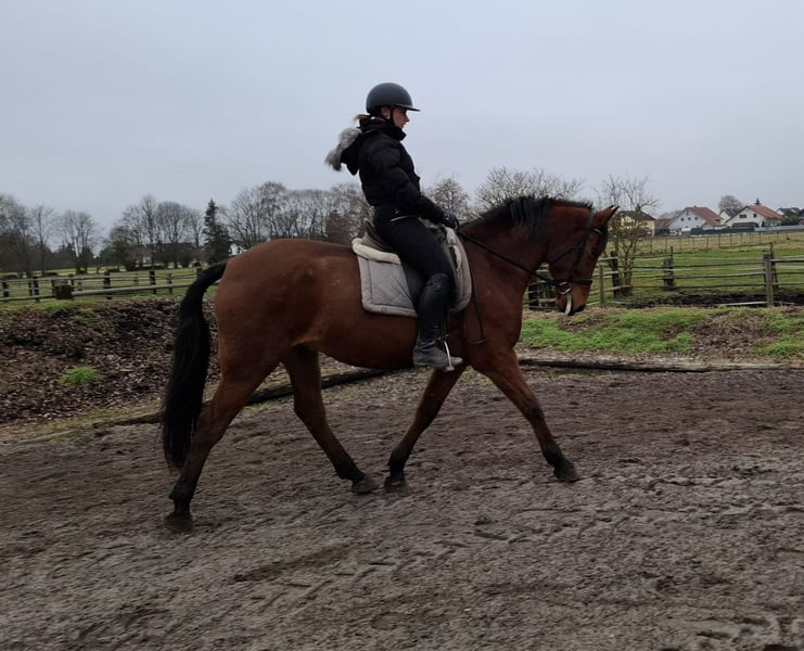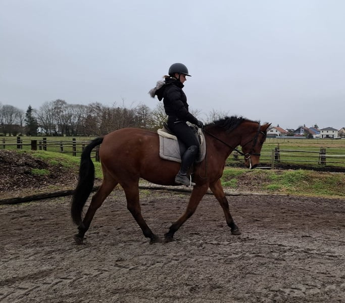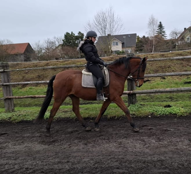 TACO es un robusto caballo cruzado andaluz de color marrón, muy elegante. Su calma y serenidad transmiten confianza rápidamente incluso a jinetes algo inseguros. TACO es muy sensible a la mano y extremadamente cómodo de montar. Tiene tres hermosos y rítmicos aires básicos. Es muy sociable y le encanta que le cuiden y le mimen. Especialmente disfruta trabajar con niños y jóvenes. Ya sea en el círculo de doma, en la pista cubierta o en el campo, TACO avanza bien, no es travieso ni demasiado rápido. Es un caballo que se adapta a las expectativas de su jinete, ajustándose a su nivel y ritmo. Vive con nosotros en una manada mixta en un paddock de campo abierto y lleva herraduras naturales. No solo bajo la silla, sino también en el trabajo en tierra y en el trato diario, TACO transmite seguridad gracias a su carácter dócil y muestra su gran confianza en las personas. Es un caballo que no plantea desafíos diarios a sus jinetes, sino que se adapta a ellos. Para más información sobre nuestros caballos y nuestro trabajo, puede contactarnos en: 0171/5269002 Hubert Seitle y 0151/12775701 Uta Großmann. También puede obtener información general sobre nuestros caballos y nuestro trabajo en www.ps-seitle.de