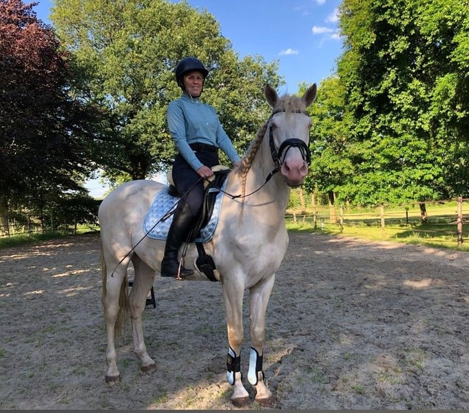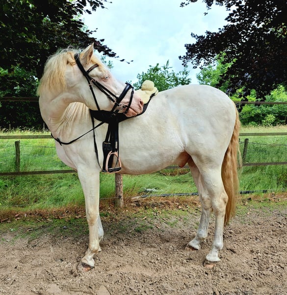 Te koop: prachtige Andalusiër ruin, geboren in 2019, een indrukwekkende verschijning met een stokmaat van 162 cm. Deze Perlino heeft een opvallende barokke bouw, waardoor hij niet alleen elegant maar ook krachtig oogt. Zijn verfijnde uitstraling en nobele karakter maken hem tot een ideale partner voor zowel dressuur als recreatie. Kent de basis in dressuur en het begin van working equitation. Heeft ervaring met buitenrijden en is verkeersmak, hier geniet hij enorm van maar dit moet weer wat opgepakt worden. Neem gerust contact op voor meer informatie of om een bezichtiging te plannen.