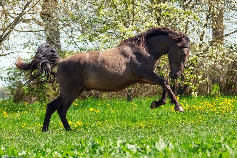 Il s'agit d'une offre unique pour un cheval familial très apprécié et bien élevé - une perle rare sur un site de vente de chevaux de nos jours ! Il n'est pas un équipement sportif, mais un membre de la famille et c'est en tant que tel qu'il est présenté. Lord of Peace (Miervaldis), hongre andalou/hanovrien de 5 ans : Il a été élevé dans un environnement familial et, dès son plus jeune âge, il a été manipulé quotidiennement. Il a fait de nombreuses et longues randonnées avec les autres chevaux (menés au sol). Il a l'expérience des parapluies, des bâches en plastique, de la balle de jeu, des sons, des machines, etc. Dans l'ensemble, il a une grande expérience du travail au sol, il a fait des figures simples comme le pas sur un piédestal, le pas espagnol, le saut en liberté, il a travaillé avec l'Equiband et les piquets de cavaleti. Il a une solide formation en travail à la longe et a récemment commencé à travailler à la longe. Il vit 24 heures sur 24 et 7 jours sur 7 à l'extérieur avec accès libre à l'écurie dans un troupeau mixte de 4, reçoit des compléments alimentaires appropriés, des équilibreurs, etc. et n'a jamais eu de problèmes de santé. Il n'a jamais eu de problèmes de santé. Bien sûr, il reçoit des visites régulières chez le maréchal-ferrant (il est pieds nus) et ses soins dentaires sont tous à jour. Il est issu d'un mélange entre la mère Hanover (Harmony - la jument noire que l'on peut voir sur les photos) et l'étalon PRE Ligero de Gredos. Grand-père PRE Revoltoso XXIX , Pedigree disponible ici : https://lwhorse.lv/horse/57247 Des radiographies du dos effectuées à l'âge de 3 ans ont révélé une colonne vertébrale en biseau. Un protocole d'entraînement approprié a donc été mis en place pour faire de lui un compagnon de monte sain et confortable. Actuellement, il reçoit deux traitements chiropratiques par an, son dos n'est pas douloureux, il est fort et garde ses muscles grâce à un régime de loisir. Il a été initié à la selle et est en train de débuter sous la selle. Le prix augmentera en fonction de son entraînement. Jusqu'à présent, son entraînement a été lent et régulier, tout en construisant une base et en encourageant la coopération. Son type de caractère est Perfectionniste, je ne le recommande donc pas comme cheval d'amateur (pas à ce stade de son développement). Il faut lui donner le temps de suivre son éducation à son rythme, mais une fois qu'il sait ce qu'on lui demande, il le fait avec une énergie et un enthousiasme inépuisables. Il a été élevé comme un cheval de famille et j'aimerais qu'il devienne le seul et unique cheval de quelqu'un ! Un compagnon fiable et stable. C'est un cheval polyvalent et je peux l'imaginer en train d'apprécier toutes sortes d'activités avec sa personne - que ce soit l'attelage, le hacking, le travail à la main ou de simples promenades ensemble. S'il a suscité votre intérêt, n'hésitez pas à nous rendre visite et à faire sa connaissance.