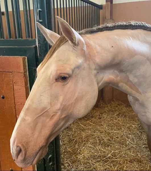 Kastriertes Pferd mit perlino-Farbe. Höhe: 1,62 m. Gezäumt. Geeignet für Kinder und Anfänger. Ein unterhaltsames Pferd zum gemeinsamen Genießen. Gesund zu 100 %. Gute Röntgenbefunde. Transportmöglichkeiten weltweit organisierbar. Kontakt: WhatsApp: +34 699 948 844 E-Mail: info.equsur@gmail.com