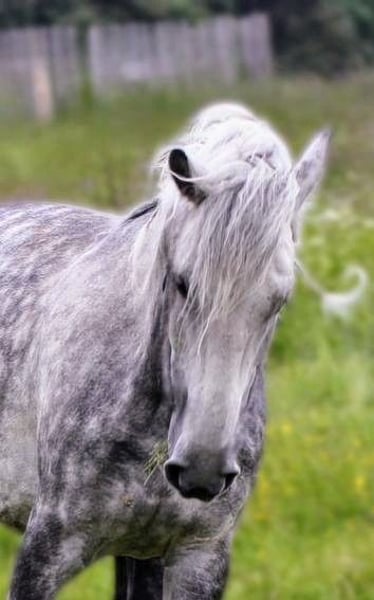 Dieser wunderschöne 8j und ca 1,50 m große Apfelschimmelwallach sucht seinen Menschen mit Pferdeverstand in einem FOR EVER HOME. Ein freizeit gerittenes Pferd,wie es schöner fast nicht sein kann, mit butterweichen Gängen und gleichmäßigem Takt. Seine super schöne Wallemähne und sein sympathischer Charakter,machen ihn zu einem Traumpferd zum verlieben. Er ist im Umgang völlig unkompliziert und brav, allerdings merkt er sehr schnell, wer das Sagen hat. Ein hochintelligenter Bursche mit Charakter, der seine Grenzen austestet - charmanter und gleichzeitig verspielter nicht sein kann. Er macht einfach Spaß und mit ihm wird es nie langweilig,da er immer gut gelaunt und zu einem Späßchen aufgelegt ist. Der Bube ist von etwas kräftigerer Statur und macht so ziemlich fast alles mit. Er kennt Einspänner, Gelände, Straßenverkehr, Reitplatz, Halle, Roundpen, abduschen, anbinden betüteln, Hufschmied Tierarzt.....etc. Alles, was ein Pferd im täglichen Umgang braucht. Zudem ist er verträglich in der Herde und steht aktuell mit einem Wallach und einem Hengst tagsüber auf Portionsweide und dann in seiner Box. 24/7 Weide wird ausdrücklich NICHT empfohlen,da er extrem leichtfuttrig ist! Er ist das perfekte Pferd in einer Fohlen bzw Jungspundherde, da er sehr gern mit ihnen spielt und für Ordnung sorgt,ohne böse zu sein. Derzeit frischen wir die Arbeit im Gelände wieder auf,da bei uns im Gebirge im Winter wegen reichlich Schnee und unschönen Wetterverhältnissen, dies so gut wie unmöglich ist. Er lernt extrem schnell, ist etwas triebig und möchte an manchen Tagen zur Arbeit etwas motiviert werden. Auf dem Platz ist er in allen 3 GGA gut zu reiten braucht aber einen Reiter der ihn selbstsicher führen kann. Von daher ist KEIN Anfängerpferd! Jetzt zur Weidezeit ist er der völlig entspannte Typ Pferd auf Platz und in der Halle- lässt sich dann schon auch mal etwas bitten.. In der Paddockzeit hat er ein sehr angenehmes Go. Da will arbeiten, macht ganz toll mit und will gefallen. Auch liebt er die Abwechslung und geht auch gern an der Longe/Doppellounge oder macht auch sehr gern Bodenarbeit. Stangenarbeit ist nicht so seine Lieblingsbeschäftigung. Selbstverständlich braucht er noch weitere Förderung um sein Gleichgewicht noch besser zu finden und beginnt zeitweise von selbst das Gebiss zu suchen - zeigt somit schon eine zarte Anlehnung,welche sich bei entsprechender Förderung noch deutlich verbessern wird. Er braucht EINEN konsequenten Menschen/Bezugsperson, der ihm klipp und klar sagt,was er darf und was nicht. Mit ihm an seiner Seite, wird er ein toller Kumpel und geht mit ihm durch dick und dünn. Er war bei uns noch nie krank,wird regelmäßig entwurmt und dem Hufschmied vorgestellt. Er ist barfuß,kennt aber auch Eisen oder Duplos. Zusätzlich hat er befundfreie Röntgenbilder der Beine aus 2022. Mit weiterer Ausbildung und Routine, steigt auch sein Preis. Wir können ihn uns sehr gut in einem kleinen privaten Offenstall vorstellen,wo er ein paar liebe Kumpels hat. Mit zickigen und ranghohen Stuten kommt er nicht zurecht. Allerdings braucht er nachts seine Box um zur Ruhe zu kommen, da er eben sehr verspielt ist. Wen dieser wunderschöne Schimmel anspricht - einfach melden. Für Probereiten berechnen wir 35€ pro Pferd und Reiter um Reittourismus vorzubeugen. Nur mal anschauen wird mit 15€ berechnet. Bei Kauf wird dieser Betrag vom Kaufpreis abgezogen.