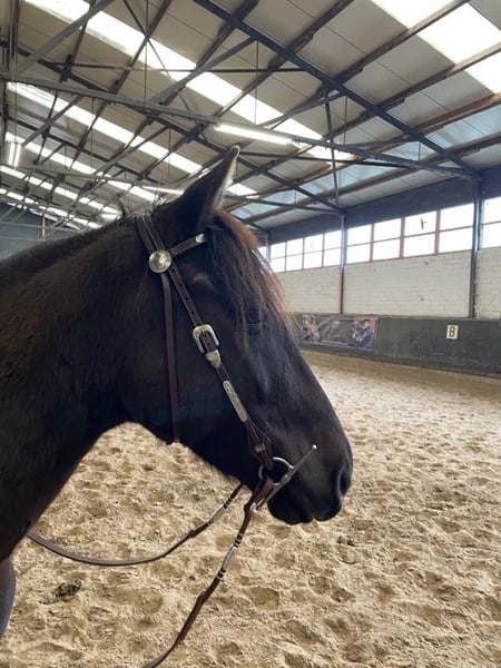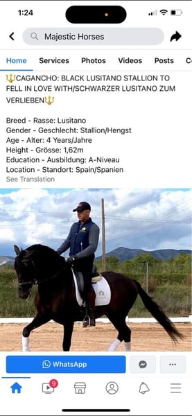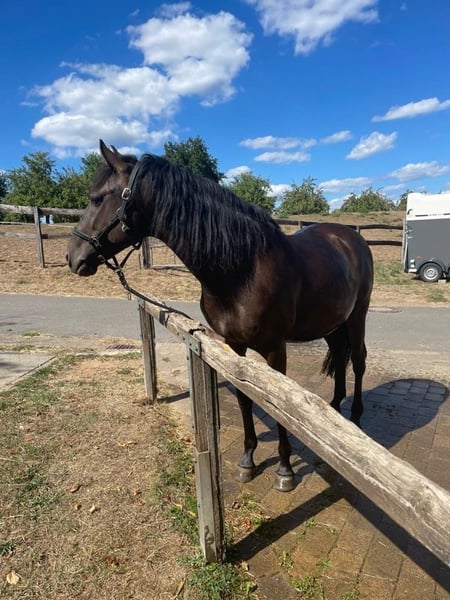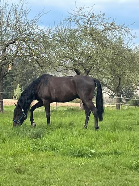 schwarzbrauner , sehr braver , personenbezogener Andalusier/Lusitano- Mix- Wallach aus Spanien. schonend und altergerecht ausgebildet. Lernwillig und motiviert in der Halle, auf dem Platz und im Gelände. Bei uns lag der Focus auf Freizeit und ab und zu kleiner Sprünge; in den letzten Monaten war Cagancho westernmäßig unter Beritt. Schweren Herzens muss ich ihn aus eigenen gesundheitlichen Gründen  ( und familiären Gründen, Schlaganfall,Pflege) verkaufen, was mir wirklich sehr schwer fällt. Abzugeben wäre er auf Wunsch mit Vielseitigkeitssattel oder / und Westernsattel ( wenn beide , dann Aufpreis )