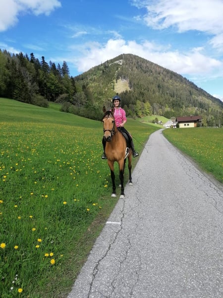 Zum Verkauf steht meine bezaubernde reinrassige PRE Stute aus dem Jahr 2015. Mit ihrem goldenen Fell und einem Stockmaß von 165 cm ist sie nicht nur ein echter Blickfang, sondern auch eine treue Begleiterin für die Freizeit. Meine Stute ist absolut freundlich, mag andere Tiere (kennt Katzen, Hunde, Hühner, Ziegen und Kühe) und ist verträglich mit allen Pferden - egal ob Ponys/Großpferde, Stuten/Wallache. Sie fügt sich absolut unkompliziert in die Herde ein und wird aufgrund ihres sozialen und aufgeweckten Wesens auch nur in Offenstallhaltung abgegeben. Da sie spaniertypisch leichtfuttrig ist, braucht sie eine regulierte Heufütterung und eingeschränkten Weidegang. Meine Stute ist ein sehr schlaues Pferd, das rasch lernt und vor allem in der klassischen Handarbeit am Kappzaum Freude und Potenzial hat. Sie beherrscht die Seitengänge und der spanische Schritt ist ihre Lieblingslektion. Sie reagiert ganz fein auf die Hilfen, denkt mit und möchte alles richtig machen. Geritten wird meine Stute gebisslos und am liebsten im Gelände. Hierbei ist sie ein Traum - auch alleine, da sie überhaupt nicht an anderen Pferden klebt. Sie ist in allen Gangarten stets gut zu regulieren und hat ein angenehmes Go mit sehr bequemen Gängen. Allerdings ist sie (noch) nicht ganz straßensicher. Autos sind ok, aber bei LKWs, Traktoren o.ä. hat sie Angst. Da braucht es entweder genug Platz zum Ausweichen oder ein sicheres Begleitpferd, hinter dem sie sich verstecken kann. Meine Stute ist gut erzogen, ist aber auch sehr feinfühlig und sensibel - deshalb ist sie kein Pferd für Anfänger oder ungeduldige/grobe Menschen. Ausserdem ist sie kein Gewichtsträger. Unarten wie Bocken oder Steigen gibt es bei ihr nicht. Ich reite sie gerne ohne Sattel, wobei sie wirklich superbrav ist und immer gut auf ihren Menschen aufpasst. Meine Stute hat ein paar gesundheitliche Themen, weshalb sie -trotz ihres Potenzials und schönen Gänge- ausschließlich als Freizeitpferd abgegeben wird. Mehr dazu gerne persönlich. Kein Notverkauf und nur mit Vorkaufsrecht/Platzkontrolle. Hochwertiges Zubehör kann miterworben werden. Ich würde mir einen Platz als Familienmitglied für meine Stute wünschen, wo sie so geliebt und umsorgt wird, wie von mir! Im Vordergrund sollte nicht das Reiten, sondern die Beziehung zum Pferd und ein gymnastizierendes, gesundheitsförderndes Arbeiten stehen. Ich freue mich auf nette, ernsthaft interessierte Anfragen.