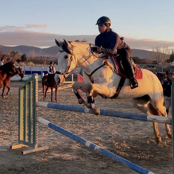 Pandora, jument espagnole, âgée de 11 ans, environ 1,60 m. Charmante jument qui deviendra votre meilleure amie, Pandora est toujours joyeuse et positive face à de nouvelles aventures. Pandora a participé en dressage avec de bons résultats jusqu’au niveau 2/3. Elle a également concouru en saut d’obstacles jusqu’à 1 mètre et a été entraînée en cross-country. Pandora est aussi entraînée aux tricks et réalise par exemple : sourire, baiser, salut, s’allonger et rouler. Elle adore faire des balades et avance partout, habituée à la circulation, à l’eau, etc. Elle peut partir en balade seule ou en groupe avec d’autres chevaux. Elle a toujours été pieds nus et possède une très bonne qualité de sabots. Elle vit actuellement en paddock avec abri, mais peut aussi être en box. Facile à transporter et charge sans problème. Elle est avec la même propriétaire depuis ses 5 mois. Elle est uniquement vendue car sa propriétaire vient d’avoir son premier enfant et manque de temps. La propriétaire souhaite lui trouver un bon foyer où elle sera au centre de l’attention. Contactez-moi pour des vidéos et plus d’informations. Pandora se trouve dans le sud de l’Espagne, nous accompagnons toutes les démarches du processus d’achat. En savoir plus sur nous sur www.cthorsesales.com Contact : info@cthorsesales.com