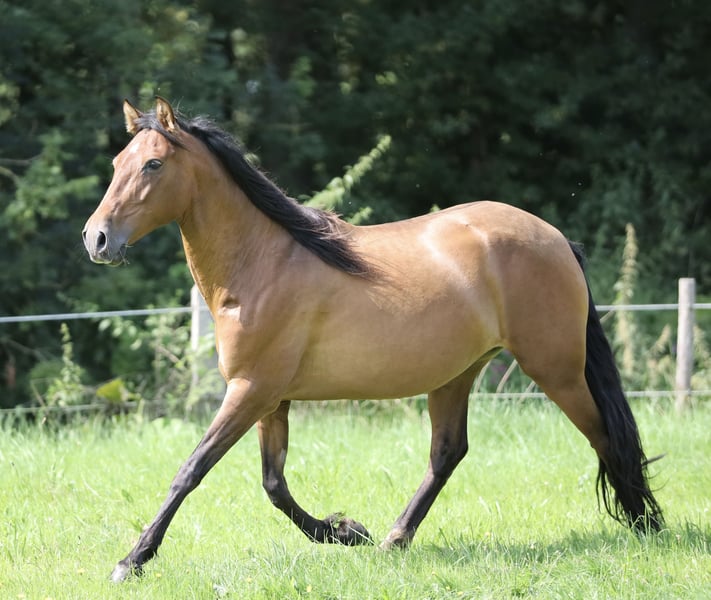 Africa is a beautiful Andalusian mare with pronounced Spanish gaits and a great build. Raised in a herd on large pastures, she has been socialized from a young age and is very people-oriented. She is backed and familiar with groundwork. Africa is absolutely well-behaved and curious in handling. She is already in Germany in a small group and shows herself to be very easygoing. For serious inquiries or more information, please feel free to get in touch!