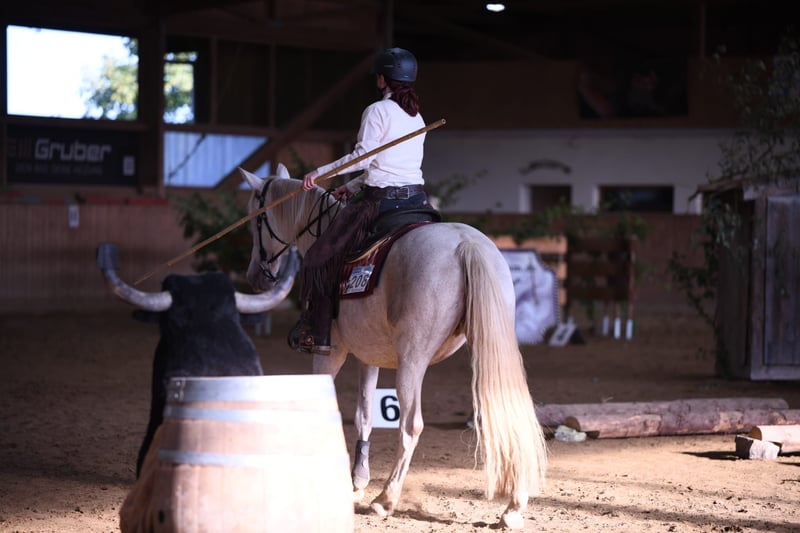 Zum Verkauf steht unsere wunderschöne Andalusier-Stute Rosi, geboren 2014, mit einem Stockmaß von 1,59 m. Rosi ist eine brave, fein zu reitende Stute, die im täglichen Umgang immer freundlich und unkompliziert ist. Sie verfügt über Turniererfahrung und kennt ebenso die Arbeit mit Rindern, was sie zu einer echten Allrounderin macht. Im Gelände zeigt sie sich mutig und zuverlässig. Sie geht alle drei Gangarten auch alleine und bleibt stets gelassen und aufmerksam. Rosi ist sowohl für ambitionierte Freizeitreiter als auch für Reiter mit sportlichen Zielen geeignet, die ein verlässliches und vielseitiges Pferd suchen. Standort: Oberfranken