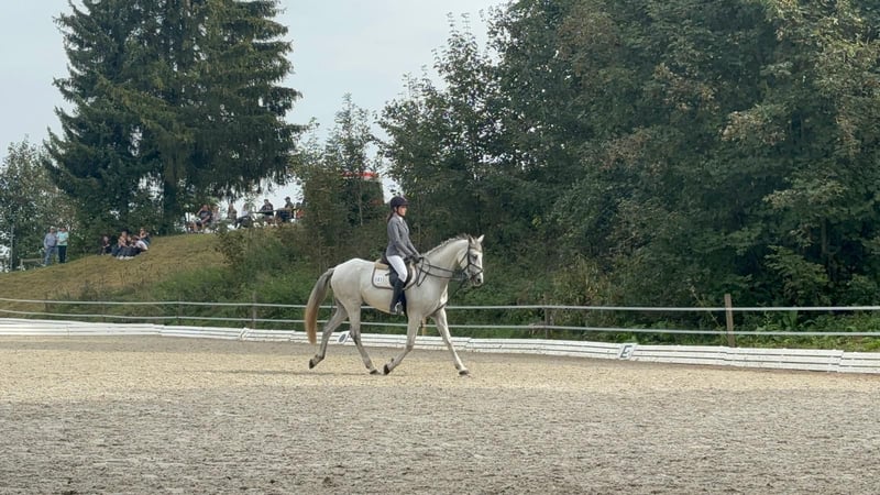 Esmira Esperanza Auf A-Niveau Turniervorgestellt 11 jährig Stockmaß: 1,70 gezüchtet in Aichstetten am Mönchshof Kennt Balance-Pads, Wanderreiten und Doppellonge etc ... Schmiede und verladefromm Nur an ambitionierte Freizeitreiter abzugeben, weil sie Anfängerintolerant ist und nicht des geeignete Nervenkostüm fürs Viereck hat