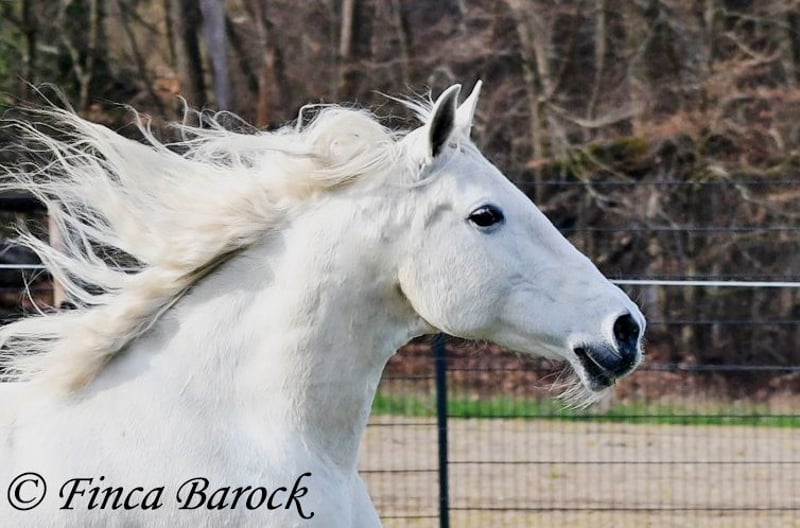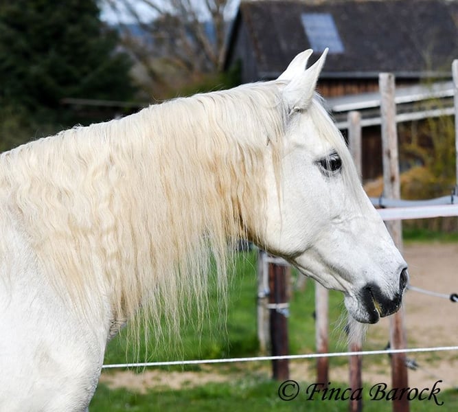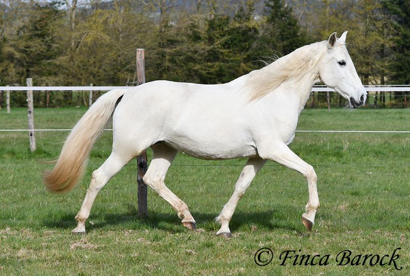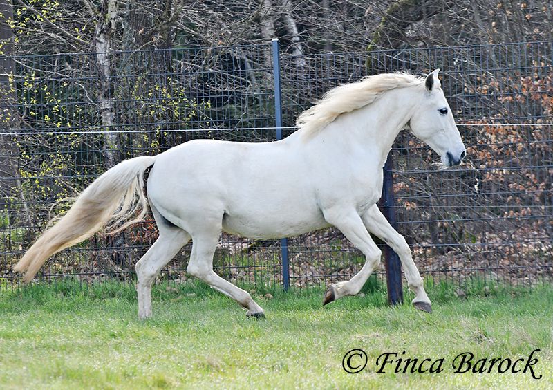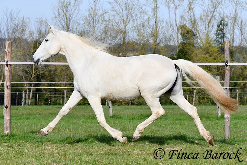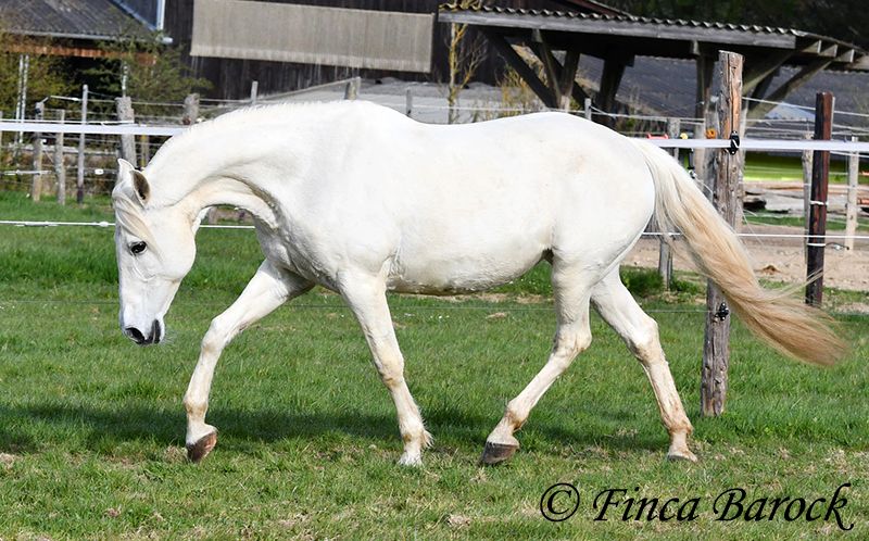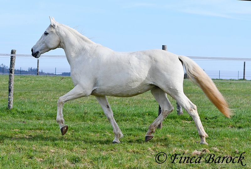 Rasse: Andalusier Name: Amena Geschlecht: Stute Stockmaß: 160 cm Alter: 20.03.2007 Farbe: Schimmel Preis: 2900 € Vater: o. P. Mutter: o. P. Amena, ist eine kompakte Lady und wirkt direkt wie ein Einhorn aus der Fabelwelt. Sie ist seit 9 Jahre in Deutschland und immer in einer Hand. Sie stand im Offenstall in Herdenhaltung. Amena ist überwiegend im Gelände geritten worden. Hier kennt Sie es alleine als auch in der Gruppe herauszugehen. Sie kennt natürlich auch Straßenverkehr, Fahrradfahrer etc. In den letzten Monaten wurde Sie aus Zeit und Gesundheitsgründen der Besitzerin nicht mehr gearbeitet – das ist auch der Verkaufsgrund. So sucht eine bezaubernde Maus ein passendes Zuhause. Bei uns wird Sie Stück für Stück wieder antrainiert. Es braucht aber noch Aufbautraining bis Amena wieder ein volles Reitpferd wird. Amena hat unglaublich sitzbequeme Bewegungen welche zu langen Ausritten einladen. Sie macht gut mit und ihre Kondition wird bei jeder Einheit besser. Amena sucht einen Reiter der ihr nicht zu viel Druck im Maul macht. Sie bevorzugt eher etwas längere Zügel und ist diese von Ihren Ausritten gewöhnt. Sie gehört aber nicht zum alten Eisen und hat ein angenehmes Temperament. Sie ist nicht überdreht, aber auch keine Schlaftablette. Amena ist sehr gut erzogen, steht still am Putzplatz, kennt Hunde, Katzen und Kinder. Mit ihr bekommt man ein erfahrendes Geländepferd mit freundlichem Charakter. Sie ist deutsches Gras seit langen gewöhnt und Barhufer. Kontakt: Finca Barock, Tel. 0173-696 31 81, 56291 Wiebelsheim
