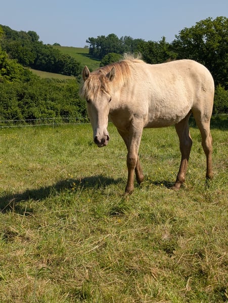 Ojalá de Alambar: PRE PP filly by Eva Salazar and Yunque la Reina (incredible stallion from the Haras du Vencedor in the last photo) born June 7, 2024, double pearl on black base. Ojalá is tall and very well proportioned. She promises to be a baroque model with lots of mane (double wavy mane). She will undoubtedly be a sublime mare. She has a very pleasant character, close to people, curious and intelligent. She will benefit from late, even natural weaning, impeccable training and complete health care: vaccinations, deworming, trimming, etc. She is Yunque la Reina's only PRE double pearl filly, an opportunity not to be missed!