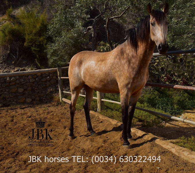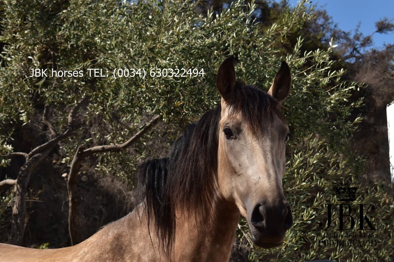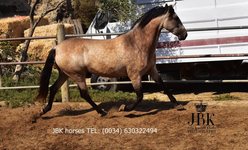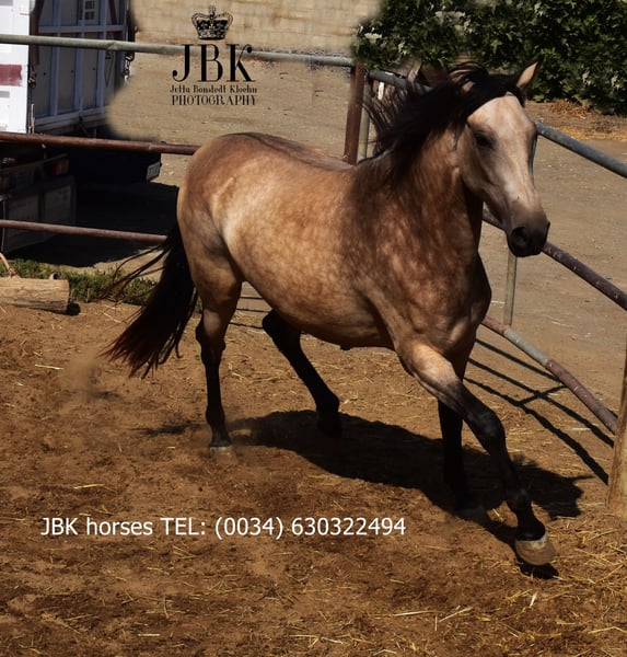 Furia ist eine bezaubernde Falbstute mit tollem Esprit und Go. Sie ist freundlich und liebenswert. Sie lernt derzeit die ersten Schritte des Longierens, dabei zeigt sie sich fleissig und kooperativ. Aber es wird alles spielerisch mit ihr gemacht, sie ist ja noch jung und hat alle Zeit der Welt. Sie wurde am 15.03.2023 geboren. Leider können wir zu ihre Herkunft nichts sagen wir kennen ihre Eltern nicht. Aber was klar erkennbar ist: sie hatten Qualität, denn das spiegelt sich eindeutig in ihr wieder. Ihre dynamischen Gänge sind einfach toll, und ihr Wesen zeigen ebenso ein gutes Elternhaus.