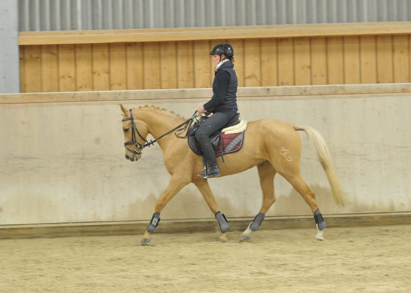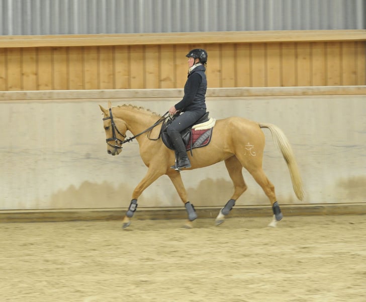Charming 4.5-year-old mare. Zafira is a versatile Palomino mare, handling her tasks impeccably with a calm and respectful demeanor. She has plenty of stamina and talent over fences. She is also familiar with road traffic and fairs, making her an excellent all-rounder for a variety of disciplines.