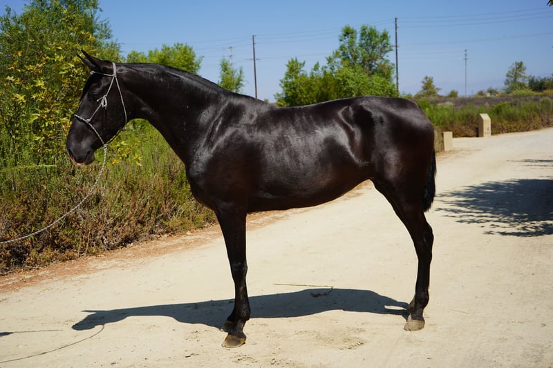 For Sale: Stunning Andalusian Mare | Includes Breeding Service Introducing a beautiful Andalusian mare, born in 2019, standing at a graceful 15 hands high. This striking black beauty is not only a head-turner but also comes from a reputable breeding background, showcasing the elegance and athleticism that the Andalusian breed is known for. Her gentle temperament makes her an ideal companion. Whether you’re looking for a horse for breeding, trail riding, or simply as a cherished partner, this mare is ready to impress. She is well-trained and has a solid foundation in groundwork, making her easy to handle and a joy to work with. Her striking appearance and smooth gaits will surely capture the hearts of all who meet her. -Previously had 2 colts. -Very fertile and sound. -Option to breed with any of our legendary stallions for no additional cost. Visit whitestallionhay.com to view available stallions. Family Background - Sire (Guayacan) Winner of piaffe competitions in Costa Rica, Mexico, and the USA. Guayacan had a great temperament and working disposition. He was ready to work which helped him obtain many 1st places and special recognitions in dancing competitions. - Dam (Viviana) Granddaughter of Indiano XVIII, a legendary horse nicknamed, "The Lion of Spain" because he was an undefeated multiple champion in morphology, functionality, and movement competitions in Spain. Don’t miss the opportunity to own this exceptional Andalusian mare! For more information and to arrange a visit, please contact us today.