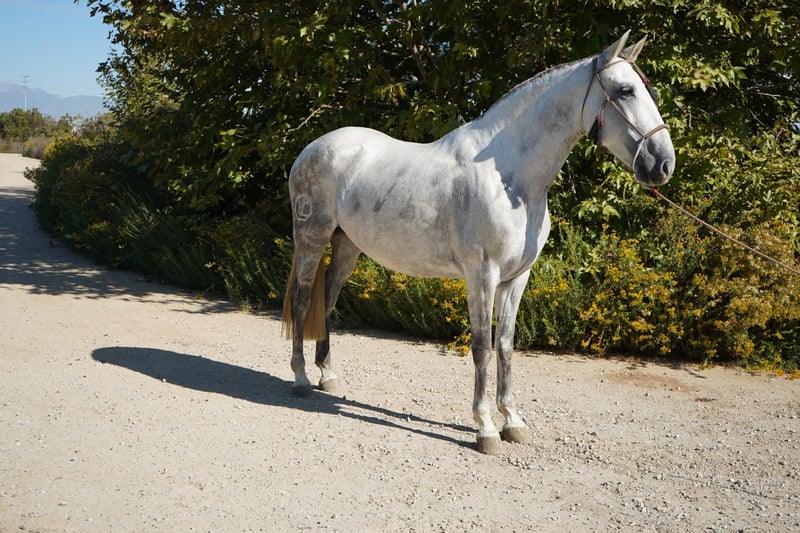 Diestra BG's Background Breed - Andalusian Gender - Mare DOB - 04/08/19 Price - $8,499 Eligible for IALHA papers. Excellent morphology and movement for a high standard breeding program Family Background - Sire (Armas Diestro) Armas Diestro was the direct son of Judio VII. Judio VII is a Carthusian horse. A Carthusian stallion that inherited consistent classical conformation and temperament. - Dam (Queen Diana) Descendant of Sandokan, an iconic horse throughout Mexico and the United States. Sandokan offspring are a guaranteed success under saddle. Sandokan's lineage is proven with many of his offspring winning in halter, piaffe, and dressage competitions. Don't miss out on this great opportunity and contact us. Visit https://www.whitestallionhay.com/horses to view more horses.
