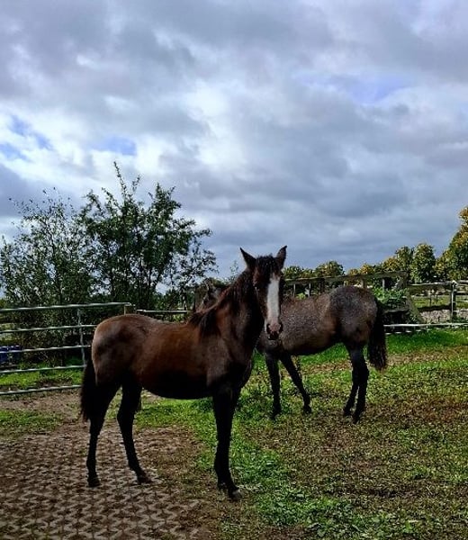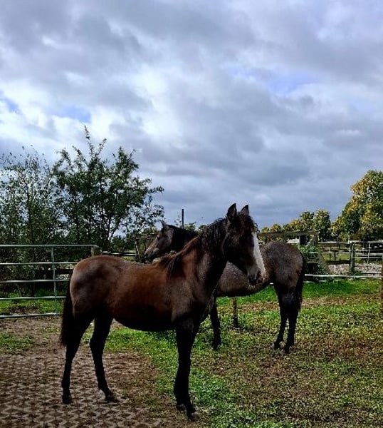 Unsere 8 Monate alte Stute entstammt namhaften Linien und zeichnet sich sowohl durch ihr herausragendes Gangwerk, als auch ihren kecken zugewandten und unerschrockenen Charakter aus. Sie wächst im Herdenverband auf und wurde hier am Hof geboren. Beide Elterntiere sind hier zu besichtigen. Sie steht im altbarocken Typ und wird ca. 160 cm groß. Die beiden Erwachsenen Pferde auf den Bildern, sind Elsas Eltern.