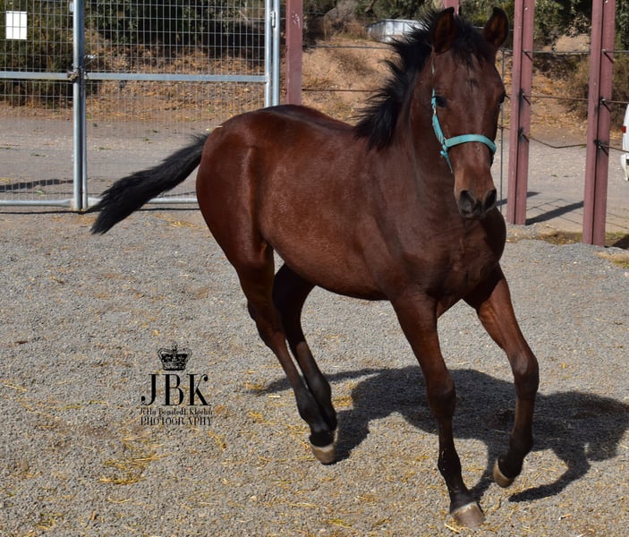 Il stallone andaluso Saleroso è un puledro molto socievole e sicuro di sé, un fantastico soggetto in crescita che mostra andature molto eleganti. È nato il 29 aprile 2025. Suo padre è un stallone PRE Rapp, di colore molto scuro, e sua madre una femmina di Andaluso Lusitano. Si prevede che raggiungerà un'altezza al garrese di circa 1,63 m, certamente non più piccolo. Saleroso è microchippato e in possesso del passaporto europeo. Attualmente stiamo iniziando ad insegnargli alcune nozioni di base del puledro, come la pulizia, il prendere i piedi, e tutte quelle piccole cose che gli saranno utili in futuro. Anche il distacco dalla madre sta procedendo, e finora si mostra molto tranquillo in tutte queste fasi. Si lascia già condurre a mano con il capestro e segue il trainer con fiducia.