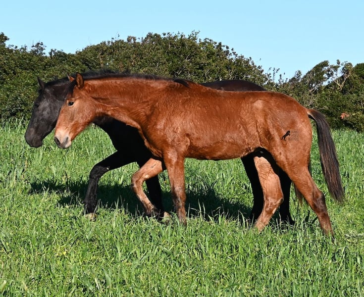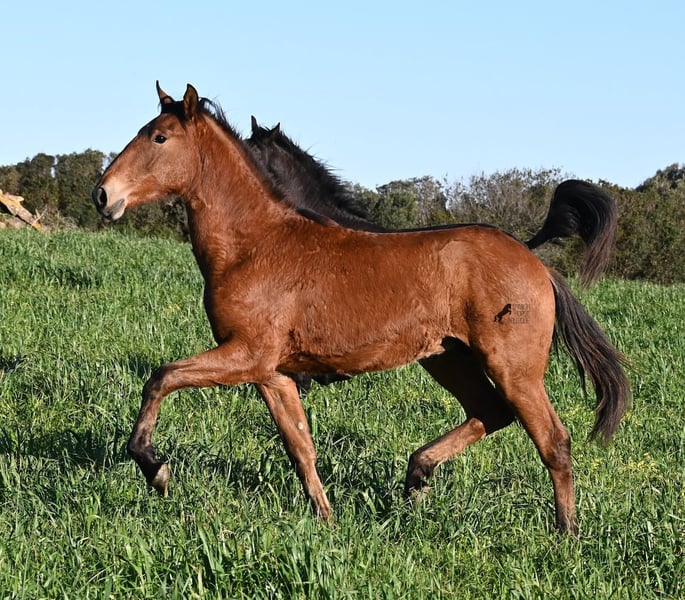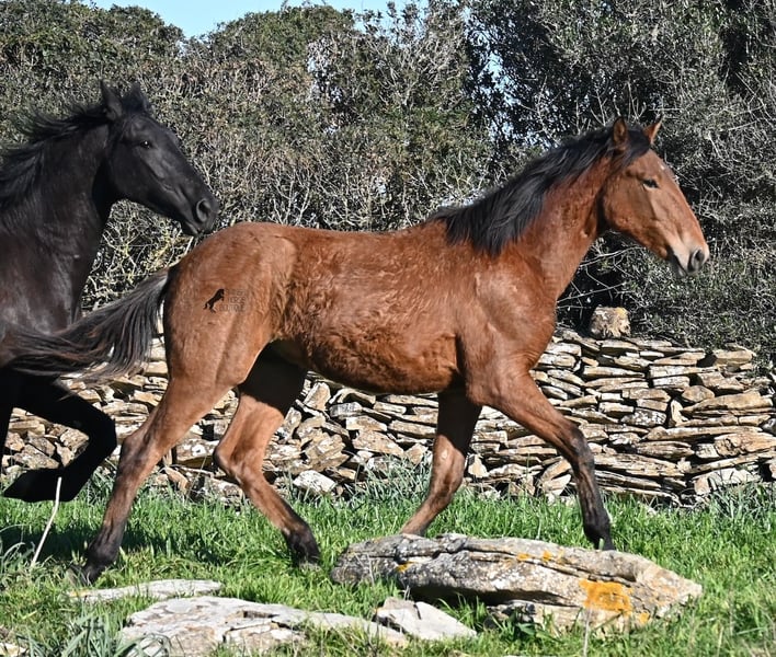 Dieser 03/2025 geborene Hengst, ist ein richtig robuster Rohdiamant! Sein Papa ist ein wunderschöner PRE x Menorquin Mix der mit seinen 22 Jahren noch topfit ist und eine eindrucksvolle Erscheinung. Sein 6jähriger Bruder ist 170cm groß und ein liebevoller, mutiger Charmeur. Seine 2 jährige Schwester (Bild) sieht mehr nach der Mutter aus, denn die ist eine reinrassige Menorquinstute, aus ganz alter Linie. Diese Mischung hat einen eleganten Youngster hervorgebracht, der den Mut und die Stärke von einem Menorquin mit sich bringt und das Exterieur mehr nach einem Spanier. Er darf auf über 40 Hektar Land, mit viel Steigungen und Felsen leben, was ihn durch die 24h Stunden Robusthaltung zu einem wirklich strapazierfähigem Pferd macht. Das sieht man auch an seiner Bemuskelung, den klaren Beinen und dem starken Rücken. Mama & Schwester sorgen für die Erziehung vom Jungspund, der ansonsten noch roh ist. Zum Absetzen war er in der Box und wurde halfterführig gemacht. Selbstverständlich wird er für den Transport wieder aufgefrischt ;) Sein zu erwartendes Endmaß wird um die 170cm liegen und durch seine tolle Bewegung wird er für viele Sparten interessant. Geländegängig ist er auf jeden Fall schon zu 100%, denn selbst der Geländewagen hatte Mühe, die steinigen Wege mit viel Steigung zu erklimmen, die der Bub mühelos und elegant bewältigt. Ein günstiger Nachwuchshengst mit Potenzial in vielen Sparten! Er hat einen Equidenpass und ist somit papiertechnisch auch reisefertig. Für all jene, die ihn erst später holen möchten, besteht die Möglichkeit auf einen Aufzuchtsplatz vor Ort. Videos und Abstammung gerne auf Anfrage. Sein Standort ist Menorca. Gerne organisiere ich vor Ort eine Fohlen-AKU,Transport oder auch ihre Reise, solltest du persönlich zum Anschauen kommen. Details dazu gerne auf meiner Seite oder im Gespräch. Saludos aus Spanien