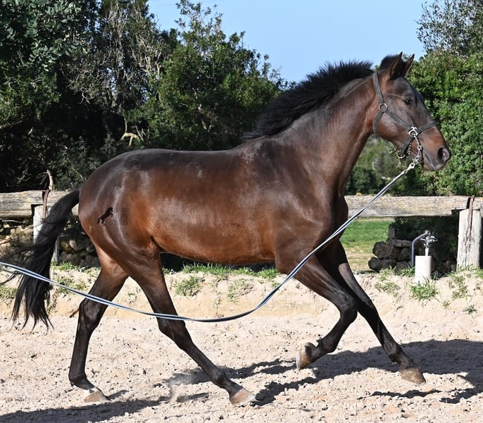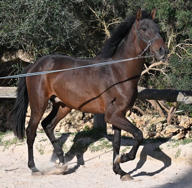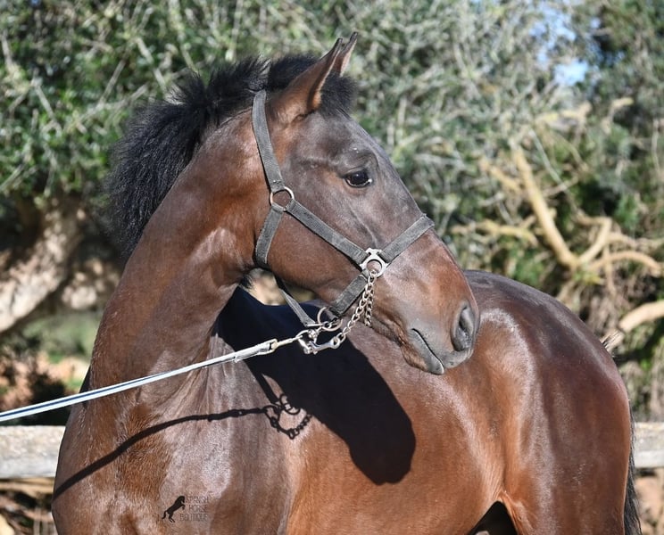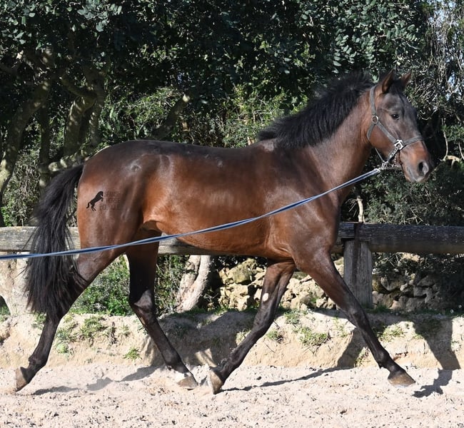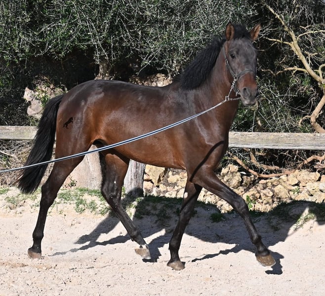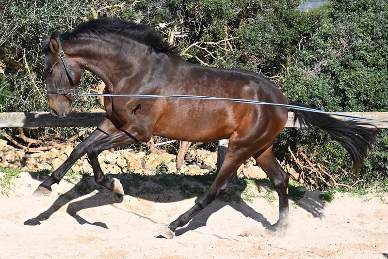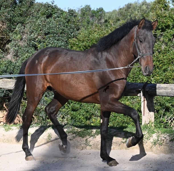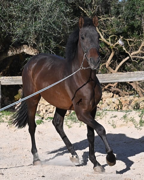 Ce jeune pur-sang Andalou né en janvier 2024 (passeport équin) est encore un petit poulain plein de vie. Il a vraiment du caractère, comme en témoigne sa réaction lors de notre séance photo, par vent de 90 km/h et rafales jusqu’à 120 km/h : il a encore plus d’énergie que prévu ! Il serait certainement bénéfique de revoir ses bases, car il mord tranquillement à la longe, remet en question qui mène lors du travail en main, et il n’est pas du genre à rester calmement immobile : il préfère tourner en rond autour de son humain, ce qui est typique pour un petit filou ! Il ne cherche jamais à faire du mal à l’humain et possède un caractère très doux. Cependant, il a besoin de quelqu’un qui lui dise clairement « non » (et probablement plusieurs fois par jour jusqu’à ce que ça soit compris !). C’est pourquoi il est proposé à un prix très avantageux, ce qui en fait une excellente option pour quelqu’un qui aime les jeunes chevaux et souhaite continuer leur éducation de base. Ses mouvements sont très corrects et, lors du travail à la longe, il devient rapidement plus calme, même en pleine tempête ! Sa taille finale prévue est d’environ 162 cm. La castration peut être effectuée sur place si souhaité. Il se trouve à Minorque. Je peux organiser sur place une visite pour vérifier son état, un transport ou même votre voyage si vous souhaitez venir le voir en personne. Plus de détails disponibles sur mon site ou lors d’un échange. Cordialement depuis l’Espagne