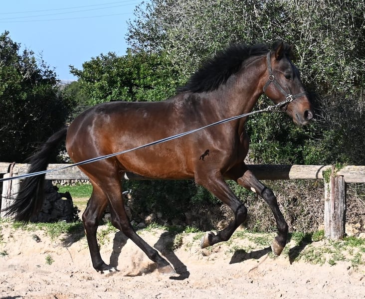 This Andalusian stallion born in January 2024 (Equine Passport) is still a little rascal. He is a true youngster, who during our photo session, in 90 km/h wind and gusts up to 120 km/h, still had plenty of energy to spare. It would probably be beneficial to revisit his basic training, as he enjoys nibbling on the lead rope, questions who is leading whom when being led, and doesn’t really like standing still – he finds it much more fun to circle around the handler :D Typical mischievous behavior! However, he never acts against humans and has a very sweet nature. Still, he needs someone who can firmly say "no" (probably 20 times a day until he gets the message!). For this reason, he is being offered at a very reasonable price and is an excellent choice for someone who enjoys young horses that still need to go back to the basics. His movements are very correct, and once some energy is released during lunging, he becomes much calmer (despite the storm!). His expected final height is around 16.2 hh, and of course, there is the option for castration on site. He is located in Menorca. I am happy to arrange a foal health check, transport, or even your journey if you want to come see him in person. Feel free to contact me for details via my website or in conversation. Greetings from Spain