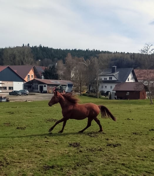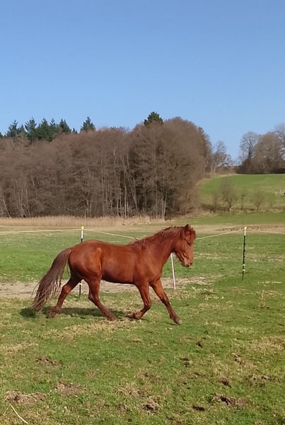 Er wächst mit einem gleichaltrigen Junghengst ganzjährig auf einer Weide mit Unterstand auf. Er ist Schmiede- und Verladefromm. Mit seinen ca 150cm steht er noch voll im Wachstum, geschätztes Endmaß zwischen 155cm bis 160cm. Leider fehlt mir die Zeit ihn weiter Auszubilden, sicherlich wird er ein cooler Allrounder egal ob für Wanderritte, Working Equitation oder einfach nur als Freizeitpferd.