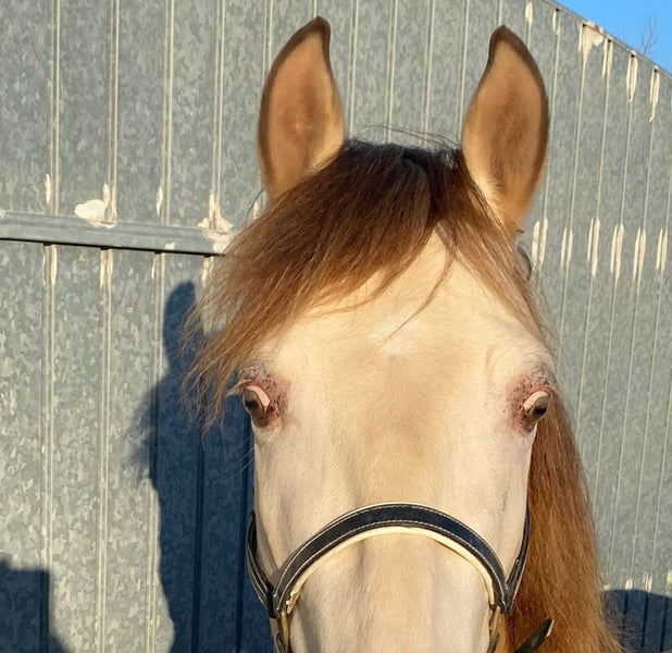 Rariatät: SANTERO ist einer der wenigen champagner-farbenen Barockhengste. Er verzaubert jeden sofort mit seinen goldenen (Bernstein) Augen, seinem freundlichen Charakter und seiner Lebensfreude. Er steht noch voll im Wachstum und man erkennt schon jetzt seine wunderschönen barocken Formen. Santero hat bereits sehr gute Röntgenbilder, die wir gerne zur Verfügung stellen. Dieser junge Hengst hat einen Passport und lebt in einer liebevollen Umgebung bei einem bekannten Showreiter. Momentan ist er noch nicht geritten. Auf Wunsch und gegen Kostenübernahme kann der Traumprinz gerne feinfühlig und schonend eingeritten werden. Nähere Infos gerne unter: WhatsApp 0175 861 45 35