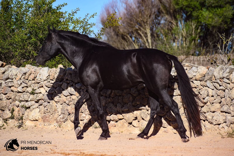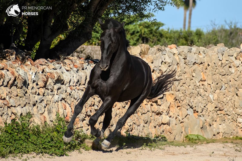 Unique opportunity! Stunning Andalusian stallion for sale, born in 2021. While he doesn't have a PRE passport (his mother didn't have one), he is the son of a majestic PRE stallion from the renowned Military Stud. With his sleek black coat and current height of 152 cm (he’ll continue growing until 6 years old), this horse is the perfect combination of beauty and potential. With the ideal balance of energy for work and a gentle, affectionate nature, he is perfect for those seeking a noble and close companion. He is calm under pressure and remarkably agile, making him the perfect partner for dressage, eventing, or working equitation. His calm demeanor also makes him ideal for relaxing trail rides. This remarkable horse is already familiar with basic handling: he picks up his feet easily, works beautifully on the lunge line, is accustomed to a bit and surcingle, and travels stress-free in a trailer. He behaves perfectly with the farrier and can live comfortably in both freedom or stabled environments. He is regularly dewormed and in excellent health. Location: Menorca You can visit him in person, or we can manage the entire purchase process online. We take care of the veterinary exam, paperwork, and transport – no matter where you are in the world! We can also help you organize castration before transport or training livery in Menorca. We’d love to help you find the horse of your dreams, and this may be the perfect partner you’ve been searching for!