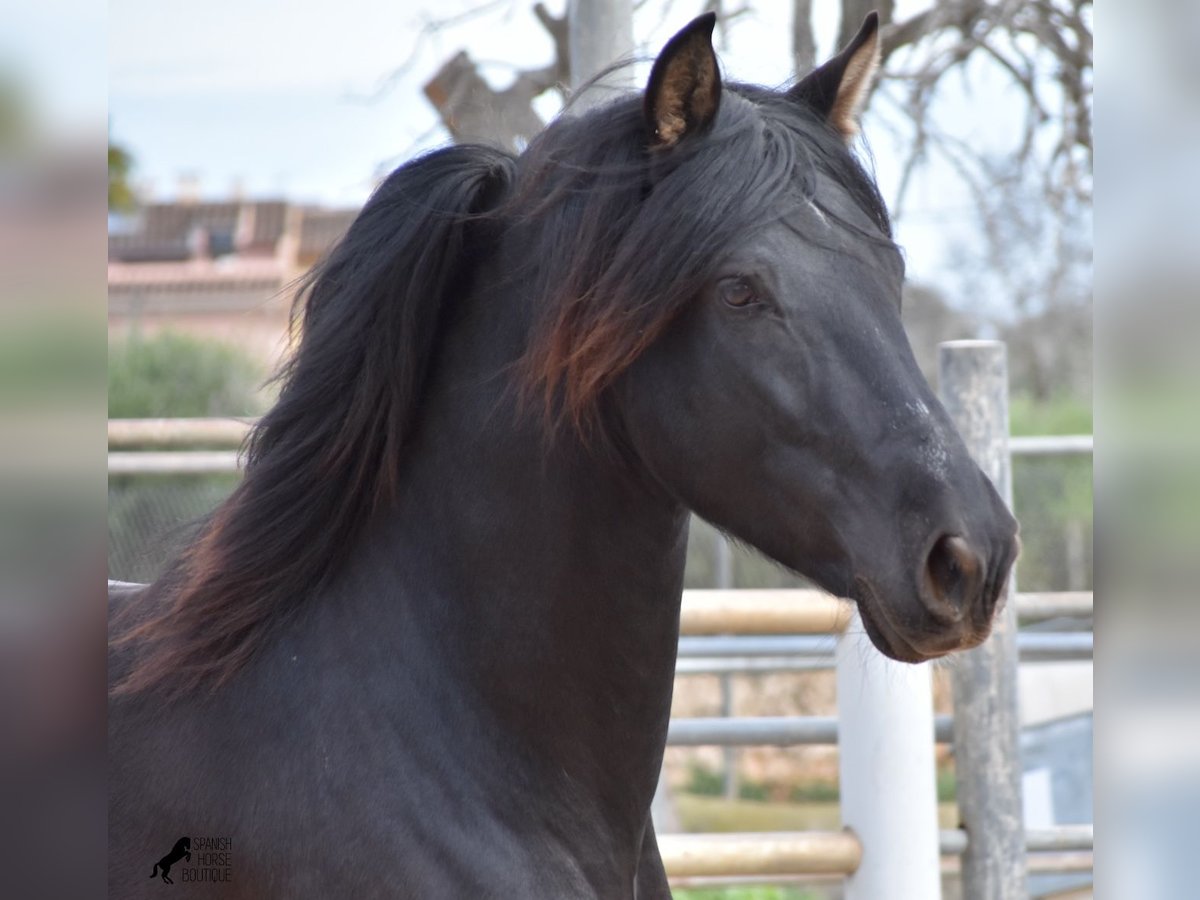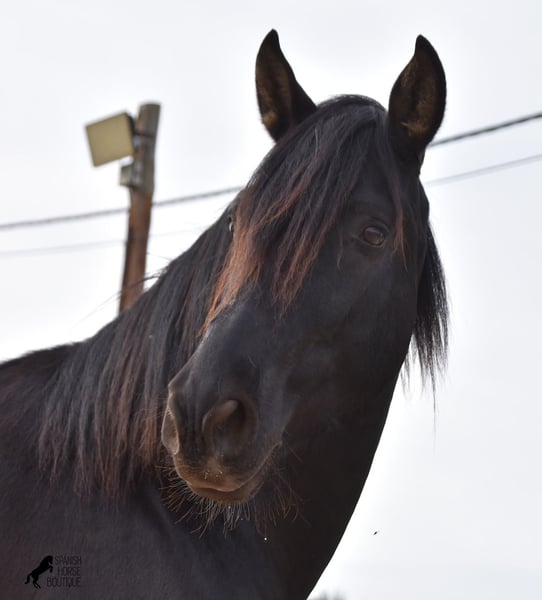 Hardly any other stallion has had as much success and is as famous as a Spanish dressage horse as POETA DE SUSAETA! And that is the sire of this baroque beauty, who has clearly also inherited good movement. This purebred Pura Raza Española stallion (Andalusian with ANCCE breed certificate), born in summer 2021, also has an excellent pedigree on his dam's side. There we find the Mejorante stallion NERO II and the ELITE stallion Inedito, both of whom are also great horses in the dressage world of the Spanish horse. And although the pedigree is very sporty, this youngster is beautifully compact and baroque, which makes him even more special. Plus the beautiful black coat and the lovely eyes - what more could you wish for? He has not yet been broken in, as it is important to the breeder that his horses have time to grow and are not overtaxed. This pays off, because the stallion is absolutely people-friendly, deeply relaxed, cuddly and a great guy all round. He lives next to mares, which doesn't interest him at all ;) He currently measures 159 cm and will grow a little more. He is barehoofed, lives in a stable and there is the possibility that he will be gelded and/or ridden on site. He is currently on Mallorca! Videos and pedigree available on request. A top horse at a very fair price. I would be happy to organize an AKU, riding, transport or even your trip if you come to see him in person. Details can be found on my website or in conversation. Saludos from Spain