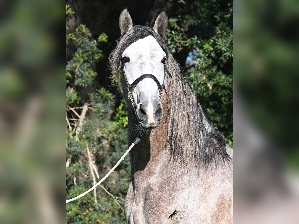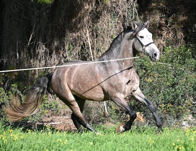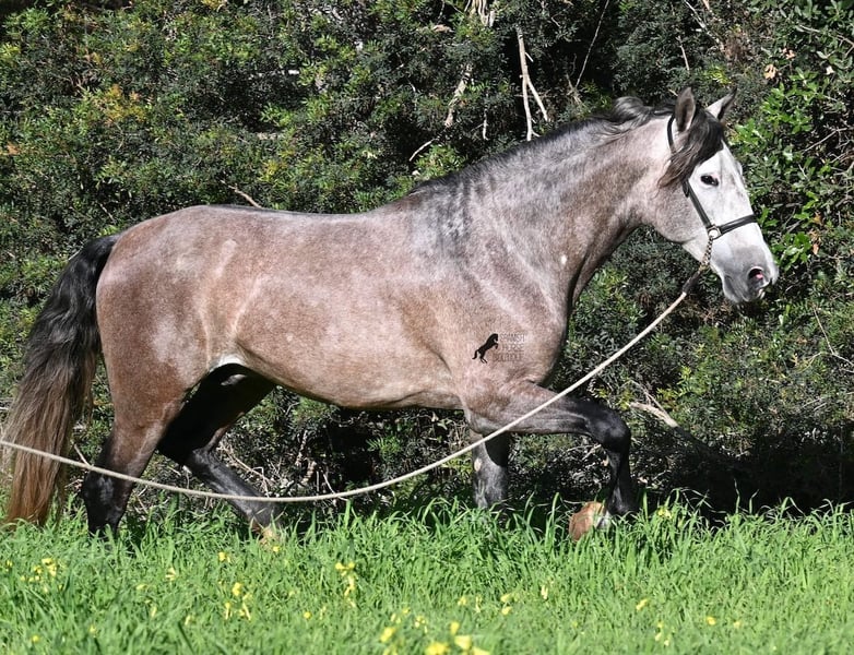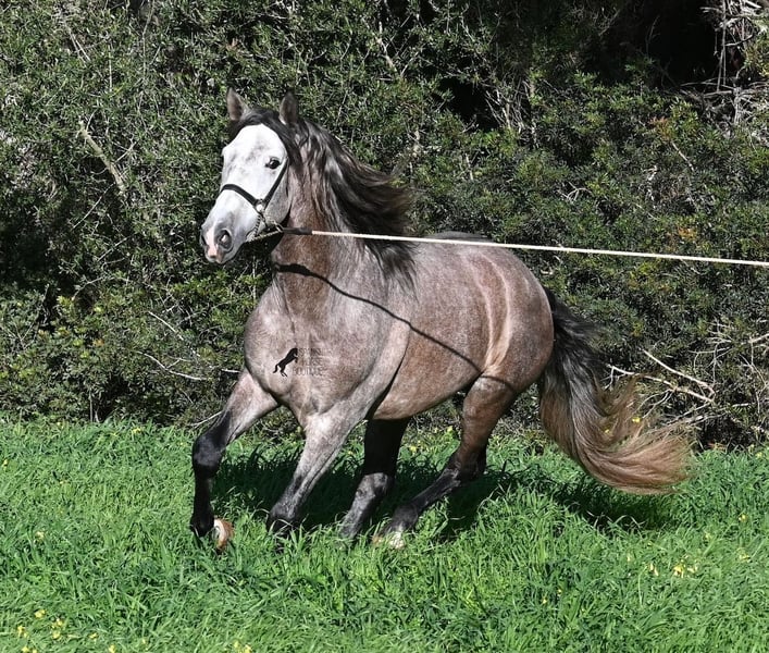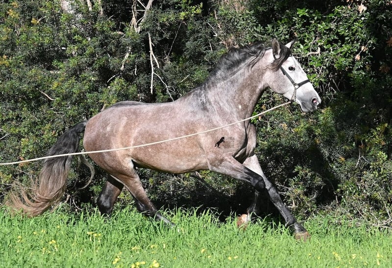 Este caballo PRE, nacido en verano de 2021 (Andaluz con certificado de raza de la ANCCE), ya es un hermoso ejemplar, ¡y eso a pesar de que aún no está completamente desarrollado! Con una altura de aproximadamente 1,65 m, ya impresiona y no requiere mucha imaginación para imaginar cómo será de adulto (será completamente blanco). Es un ejemplar muy bien educado y siempre atento a su jinete, con la intención de hacer las cosas bien y evitar cometer errores. Solo fue montado por primera vez en invierno de 2025, ya que los PREs grandes necesitan tiempo para crecer, y él lo ha tenido. Esto ahora da sus frutos, ya que es muy dispuesto a aprender y disfruta trabajar, porque nunca ha sido sobrecargado. Bajo la silla, tiene una base sólida, y ya se han iniciado trabajos en lateralidad, como el paso por fuera. Sus movimientos son impresionantes y le ofrecen un gran potencial para la doma clásica. Pero, además, es muy flexible, por lo que también sería un buen candidato para la Working Equitation o, por supuesto, como un querido caballo de ocio. Su paso es extraordinario, el trote hace latir el corazón y el galope muestra una buena elevación en la línea superior. No presenta comportamientos de semental, pero, si es necesario, podría ser castrado en el lugar, en caso de que no sea posible mantenerlo como semental. También existe la opción de un entrenamiento adicional en el lugar. Quien desee usarlo como semental, también tendrá satisfacción, ya que por línea materna proviene de sangre clásica de MONIS y YEGUADA MILITAR (líneas ancestrales del PRE). Por parte del padre, encontramos líneas deportivas en su ascendencia, incluso un semental MEJORANTE (mejorador de raza). Un hermoso ejemplar, con muy buenas maneras y mucho potencial, a un precio justo por su calidad. Su ubicación es en Menorca. Videos y genealogía disponibles a petición. Con gusto puedo organizar en el lugar una inspección veterinaria (AKU), entrenamiento, castración, transporte o incluso su viaje, si desea venir a verlo en persona. Para más detalles, consulte mi página o hable conmigo. Saludos desde España