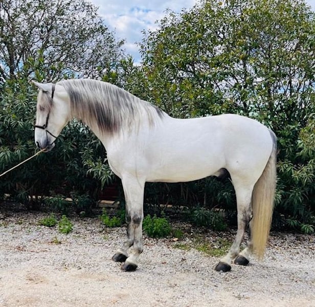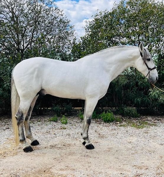 For sale: a stunning seven-year-old purebred Spanish horse (PRE), standing 17.7 hands tall, with a strong build. Healthy, very gentle, and suitable for riders of all levels. Highly trained in classical dressage. Registered as a stallion in the official PRE studbook. Sold directly from the breeding farm. Always ridden by the same professional rider from the farm. A reliable and proven horse, highly recommended for classical dressage competitions or leisure riding. His temperament is exceptional, and he has three very good gaits. Reasonably priced.