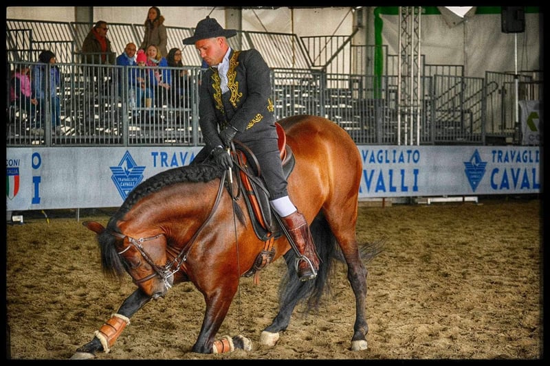 Braver spanischer Vollblutaraber, 9 Jahre alt, 1,66 m Stockmaß. Ein typischer Vertreter der spanischen Rasse, mit korrekter Morphologie, beeindruckender Präsenz und sehr ausgeglichenem Charakter. Er zeigt keinerlei Unarten oder Ängste. Er hat an FISE-Dressurwettbewerben bis zur Kategorie F teilgenommen. Er arbeitet im Schritt (Seitengänge, Cession, Schulterherein, Hinterhand-innen, Hinterhand-außen, Pirouetten im Schritt, Tritt, Galopp), auch in der hohen Schule (piaffe, spanischer Schritt, Inzidie und Passage, fast vollständig bestätigt), ist derzeit noch im Training für fliegende Galoppwechsel. Er verfügt über umfangreiche Erfahrung bei Ausstellungen und Shows und ist auch im Spaziergang brav. Für weitere Infos kontaktieren Sie bitte: 0039-3337133922.