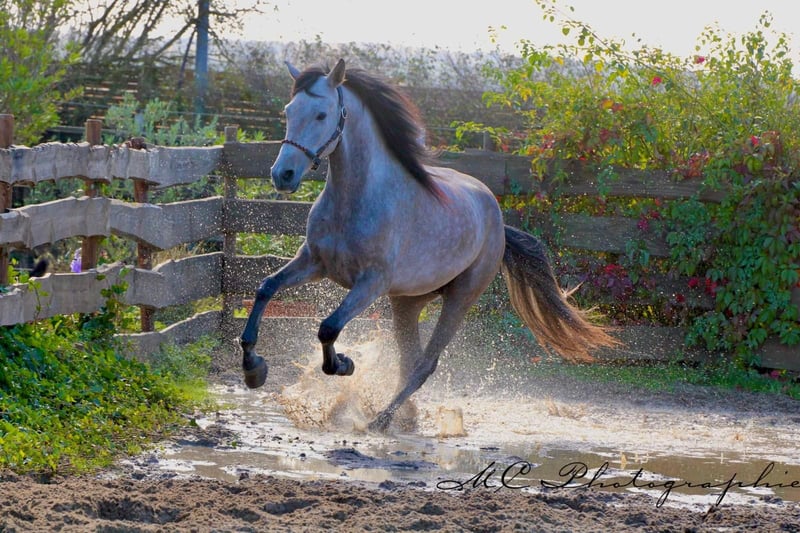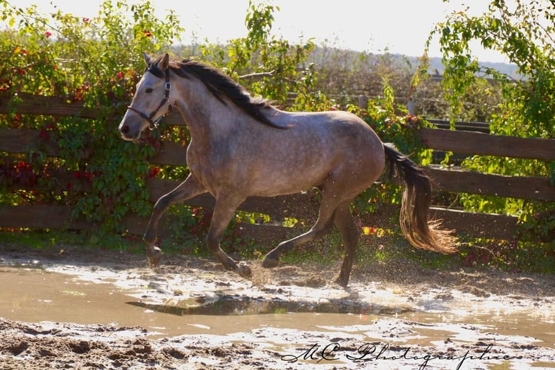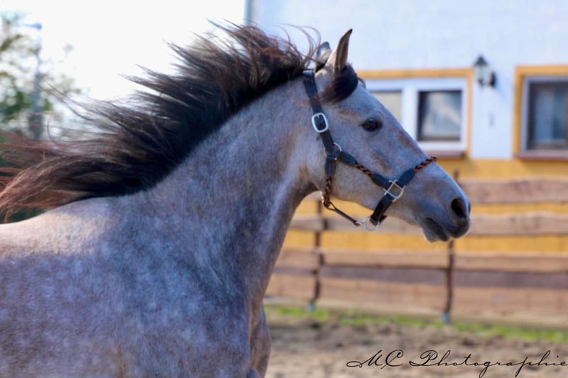 **For Sale: Andalusian gelding - Perfect leisure partner** For sale is a beautiful Andalusian gelding, born in 2020. This impressive roan gelding not only impresses with its striking color, but also with its friendly nature and versatility. With a height of 160 cm, he is the ideal size for a leisure partner who cuts a fine figure both in the field and on the arena. He is well balanced and is always willing and motivated to learn. Ridden according to age. This gelding is ideal for leisure riders. If you are looking for a loyal partner for your leisure activities who will give you a lot of pleasure with his charming character, then this Andalusian gelding is just right for you. If you are interested or have any further questions, please do not hesitate to contact me. Viewings and test rides are possible by arrangement.