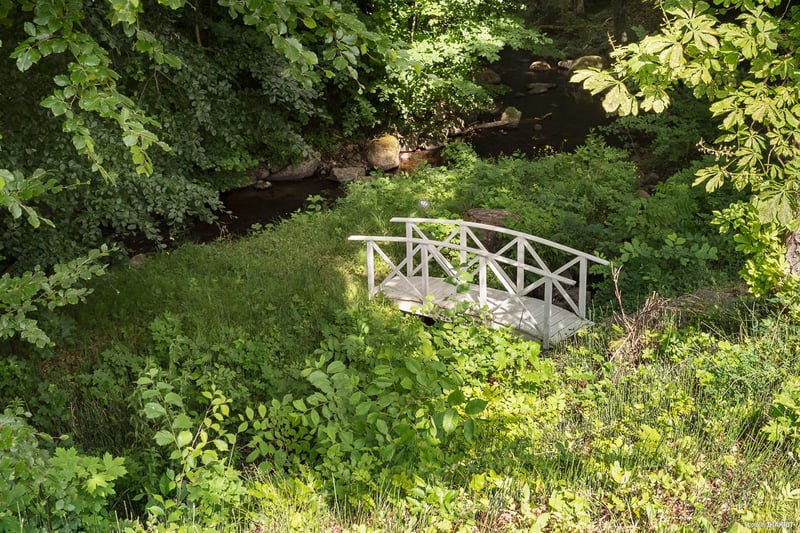 A river meanders along the property boundary, leading to a private little island with a bridge – a magical setting for long summer evenings, peaceful mornings with coffee and birdsong, or memorable dinners under the open sky. The surroundings offer rich wildlife, untouched silence, and stunning views in every direction – a truly unique environment for peace, inspiration, and freedom.